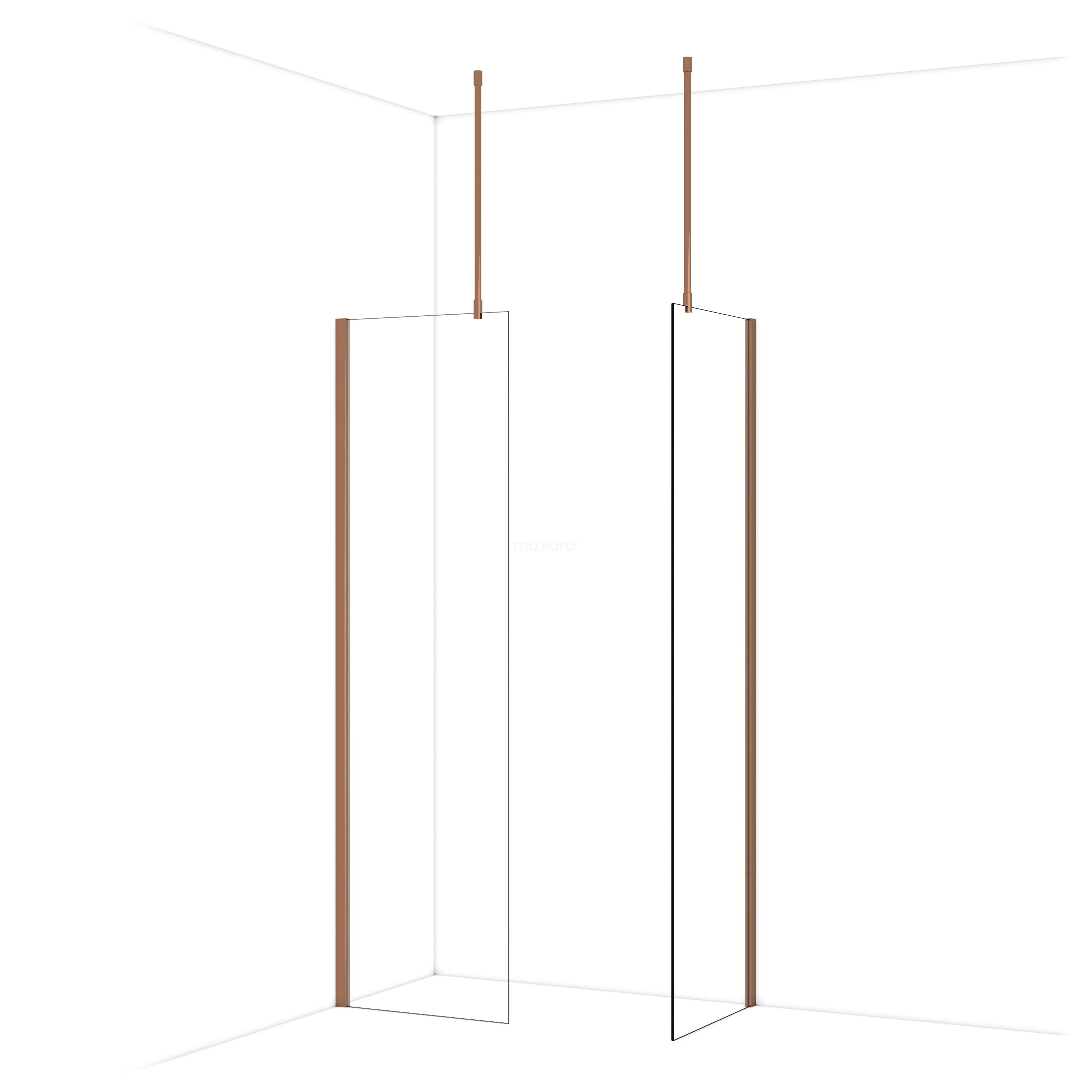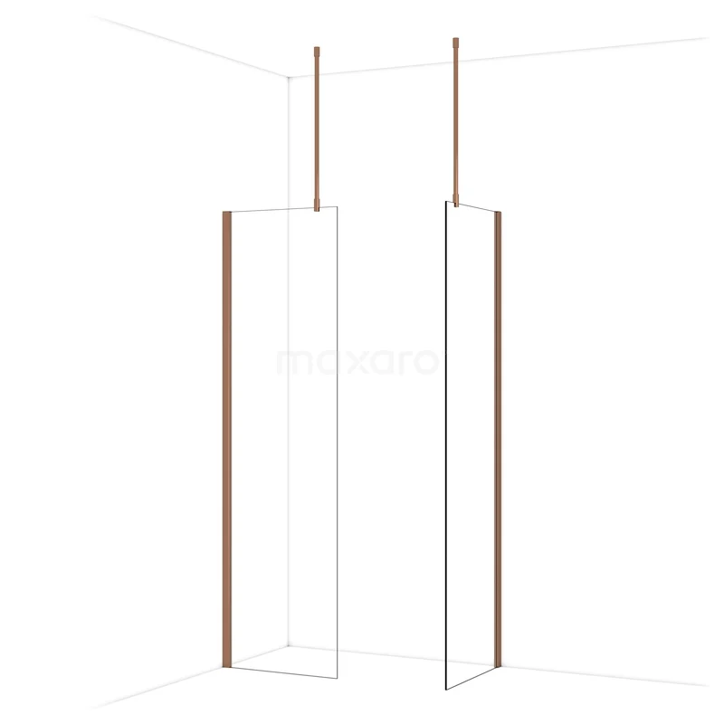 Diamond Inloopdouche | 60x60 cm Glanzend koper Helder glas 2 vaste wanden