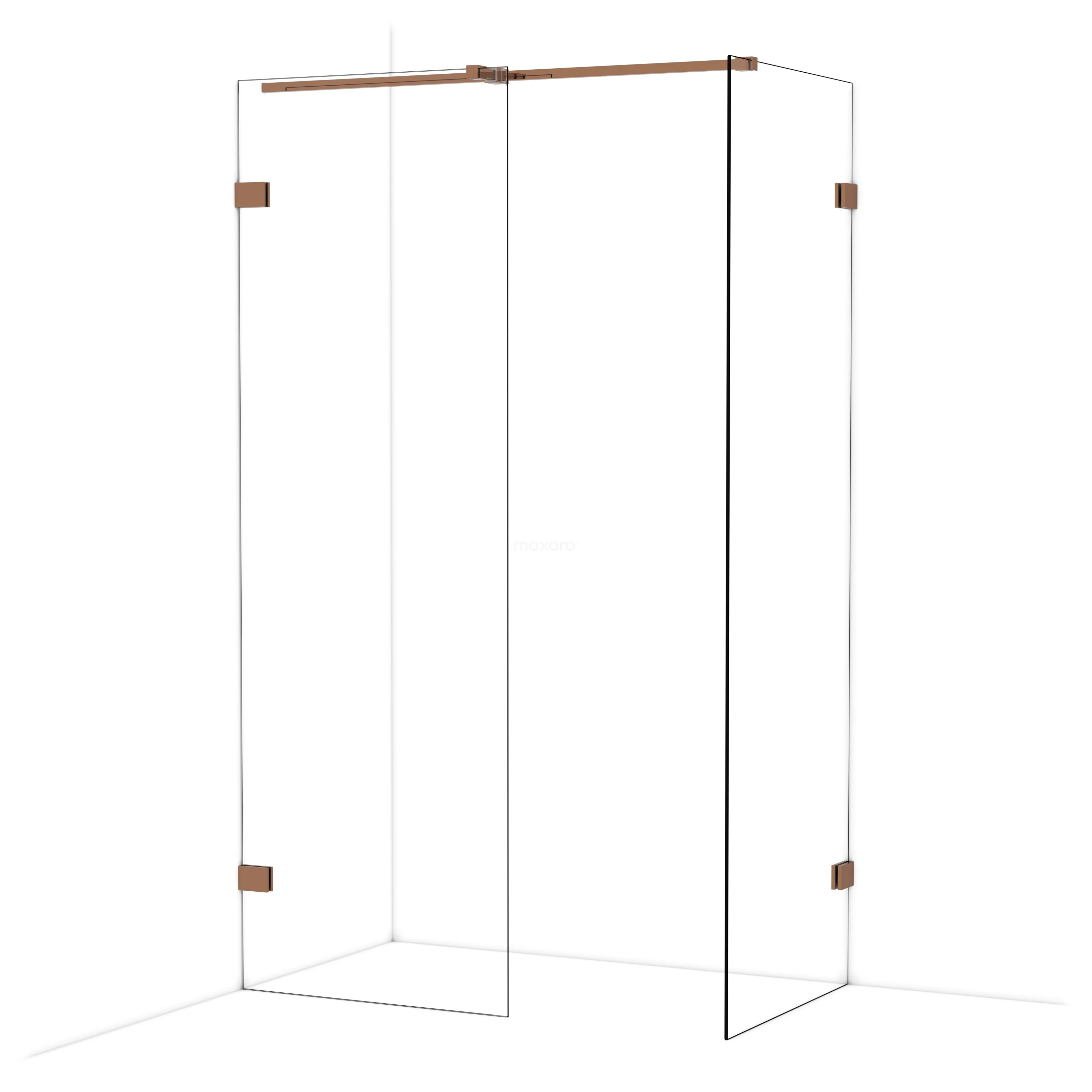 Diamond Inloopdouche | 70x70 cm Glanzend koper Helder glas 2 vaste wanden