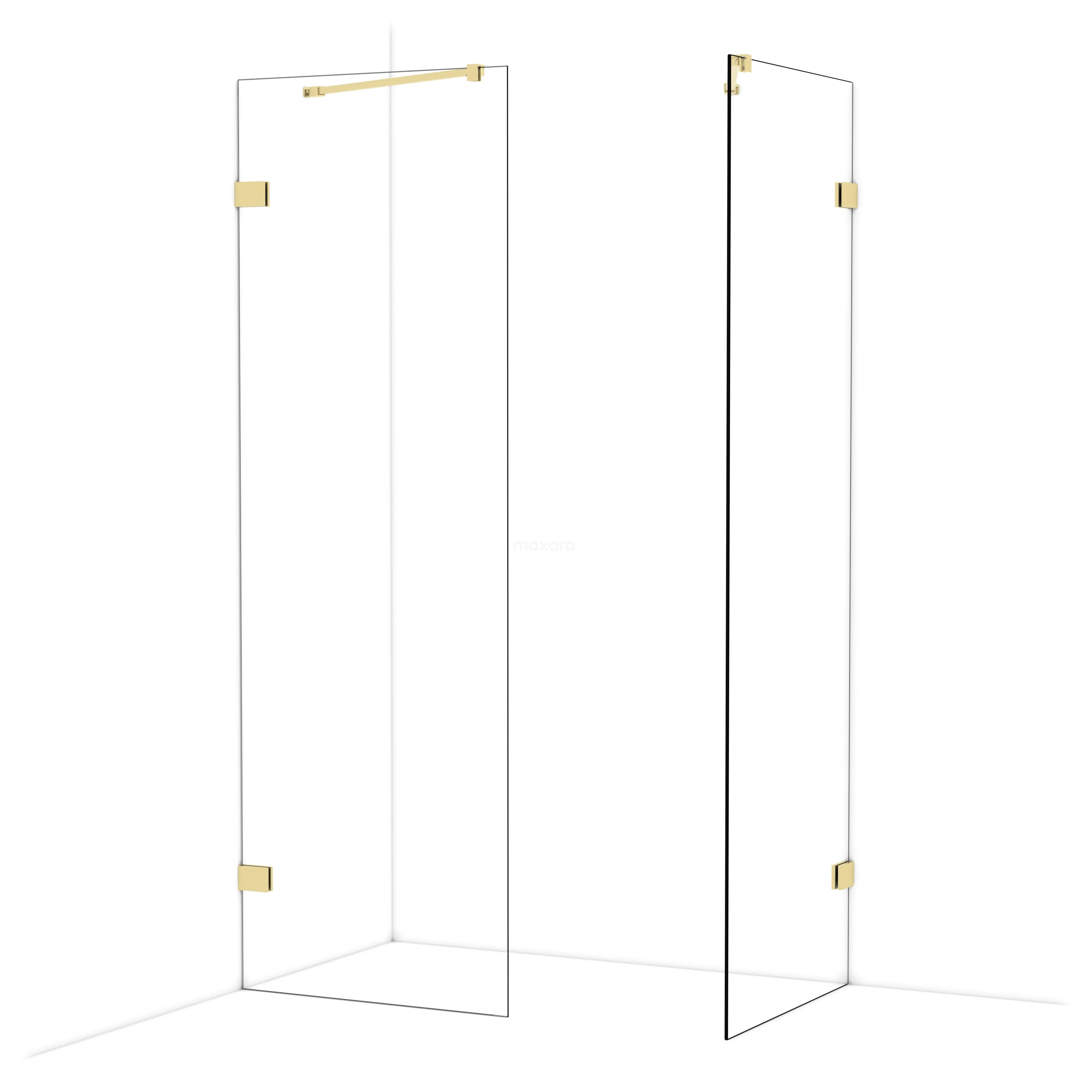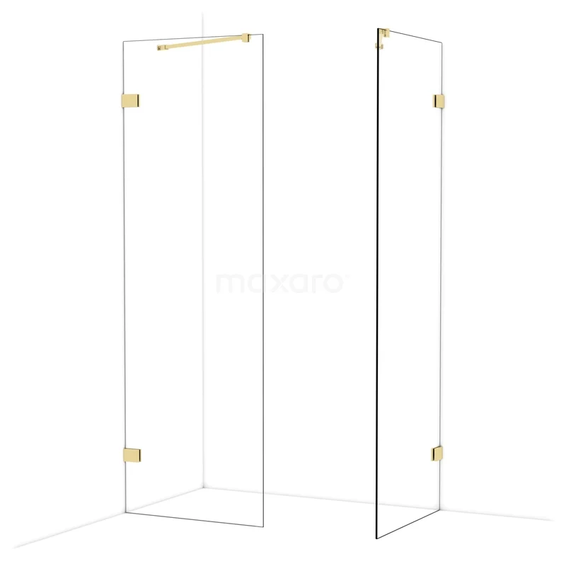 Diamond Inloopdouche | 70x70 cm Glanzend lichtgoud Helder glas 2 vaste wanden