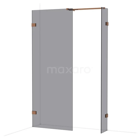 Diamond Inloopdouche | 80x30 cm Glanzend koper Rookglas 2 vaste wanden