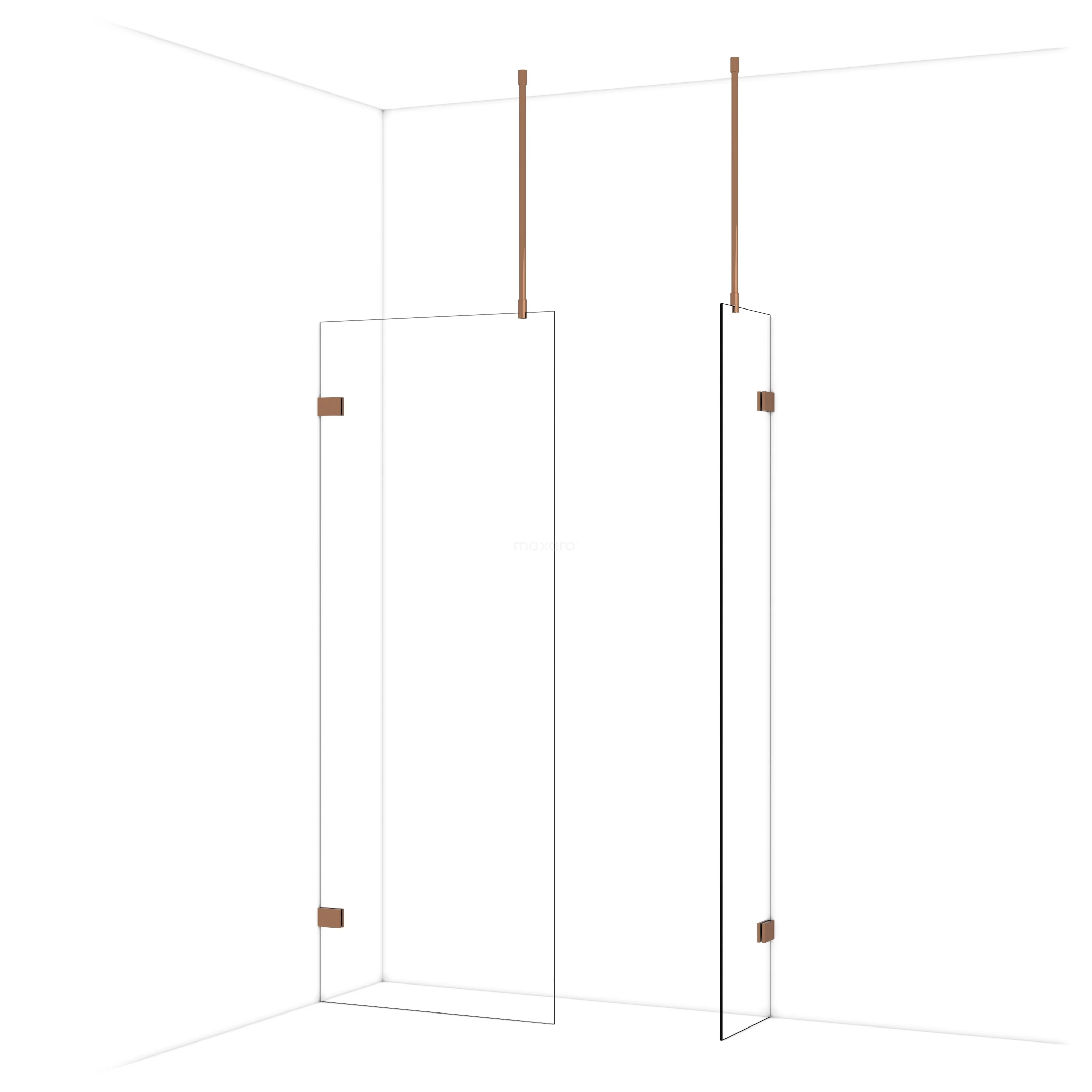 Diamond Inloopdouche | 80x40 cm Glanzend koper Helder glas 2 vaste wanden