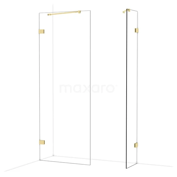 Diamond Inloopdouche | 80x40 cm Glanzend lichtgoud Helder glas 2 vaste wanden