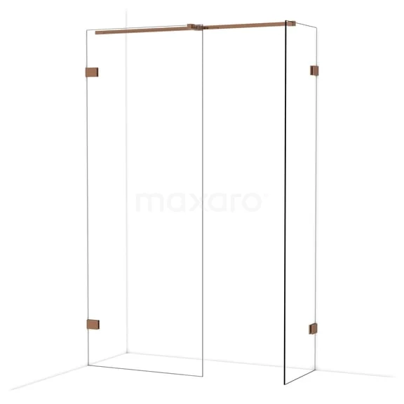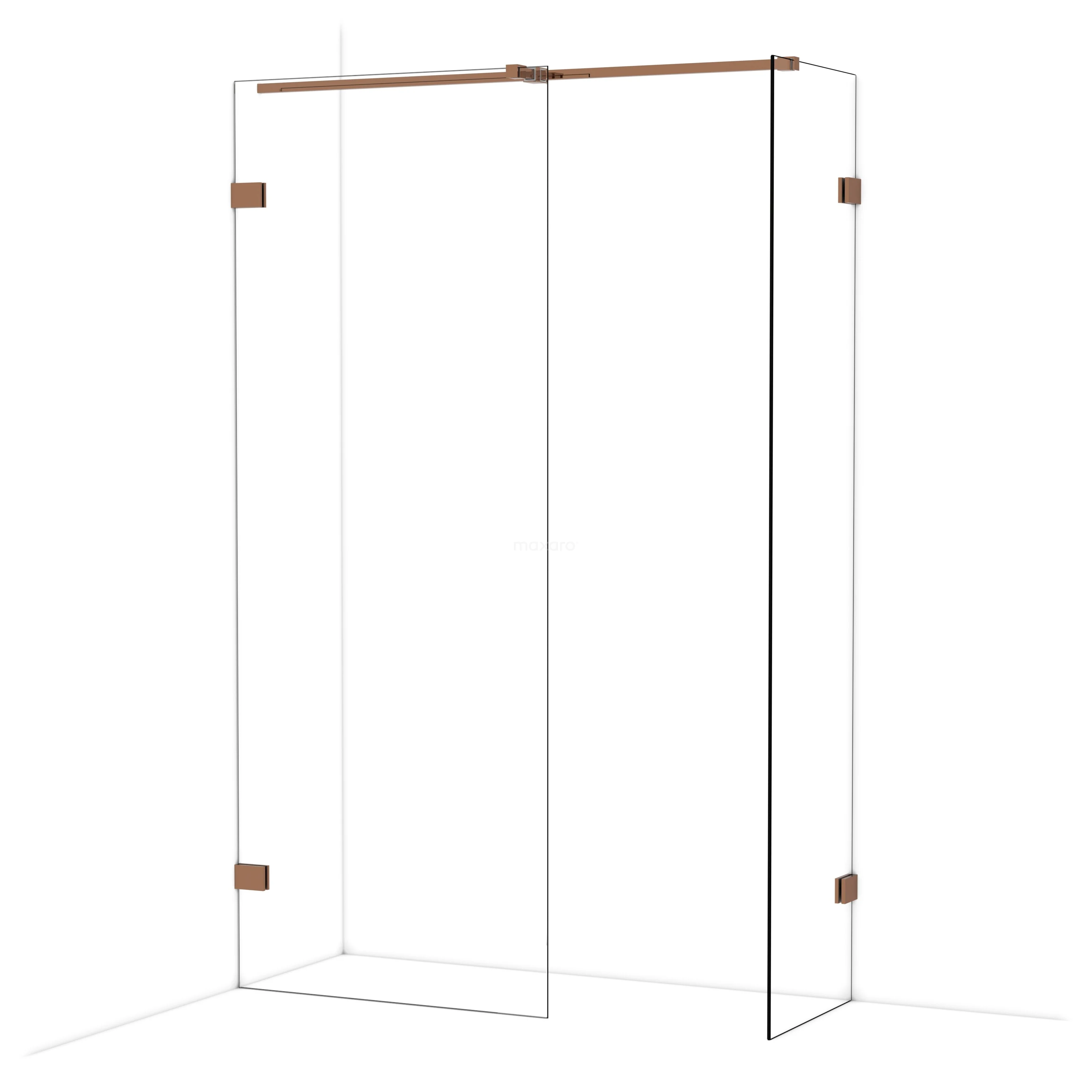 Diamond Inloopdouche | 80x50 cm Glanzend koper Helder glas 2 vaste wanden