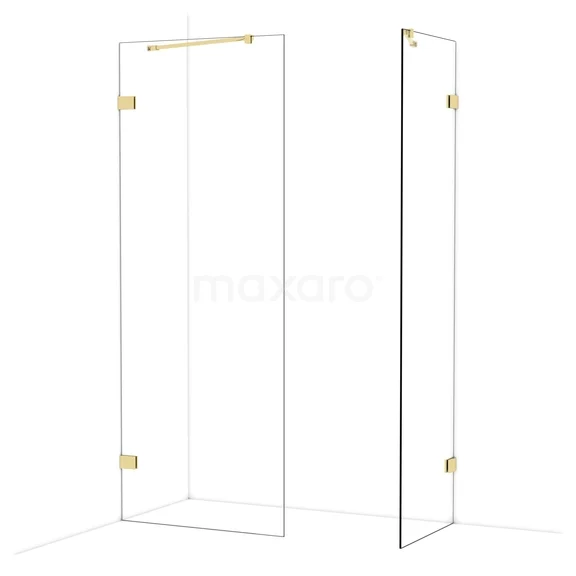 Diamond Inloopdouche | 80x60 cm Glanzend lichtgoud Helder glas 2 vaste wanden