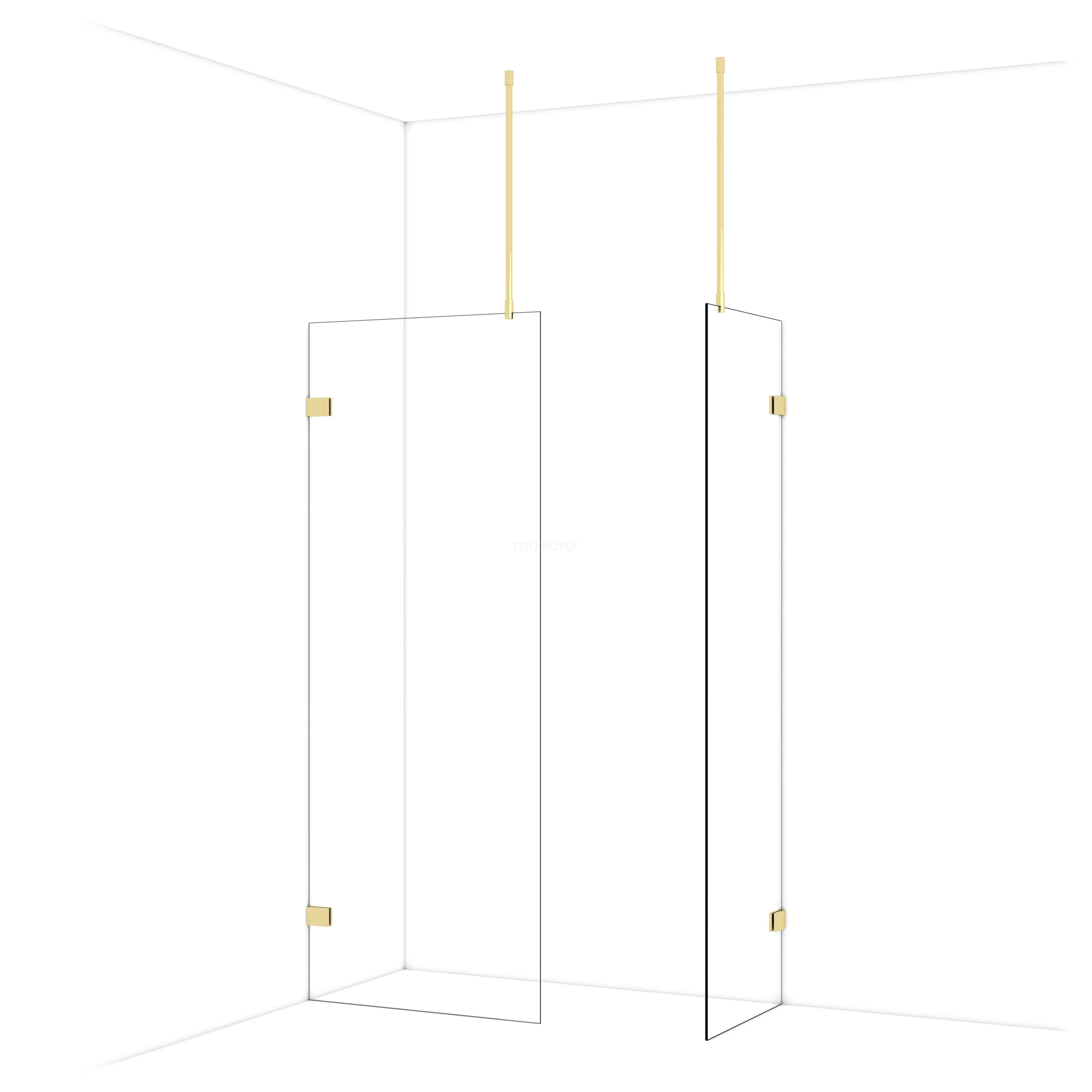 Diamond Inloopdouche | 80x60 cm Glanzend lichtgoud Helder glas 2 vaste wanden