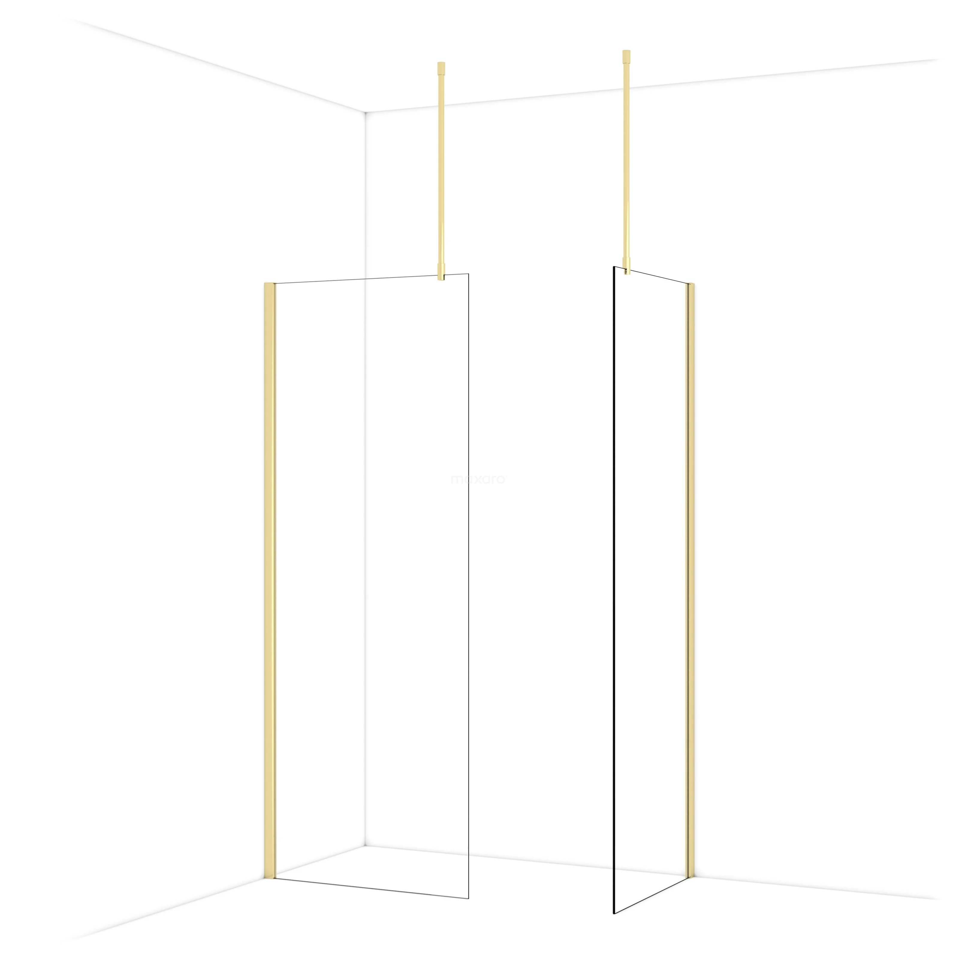 Diamond Inloopdouche | 80x70 cm Glanzend lichtgoud Helder glas 2 vaste wanden