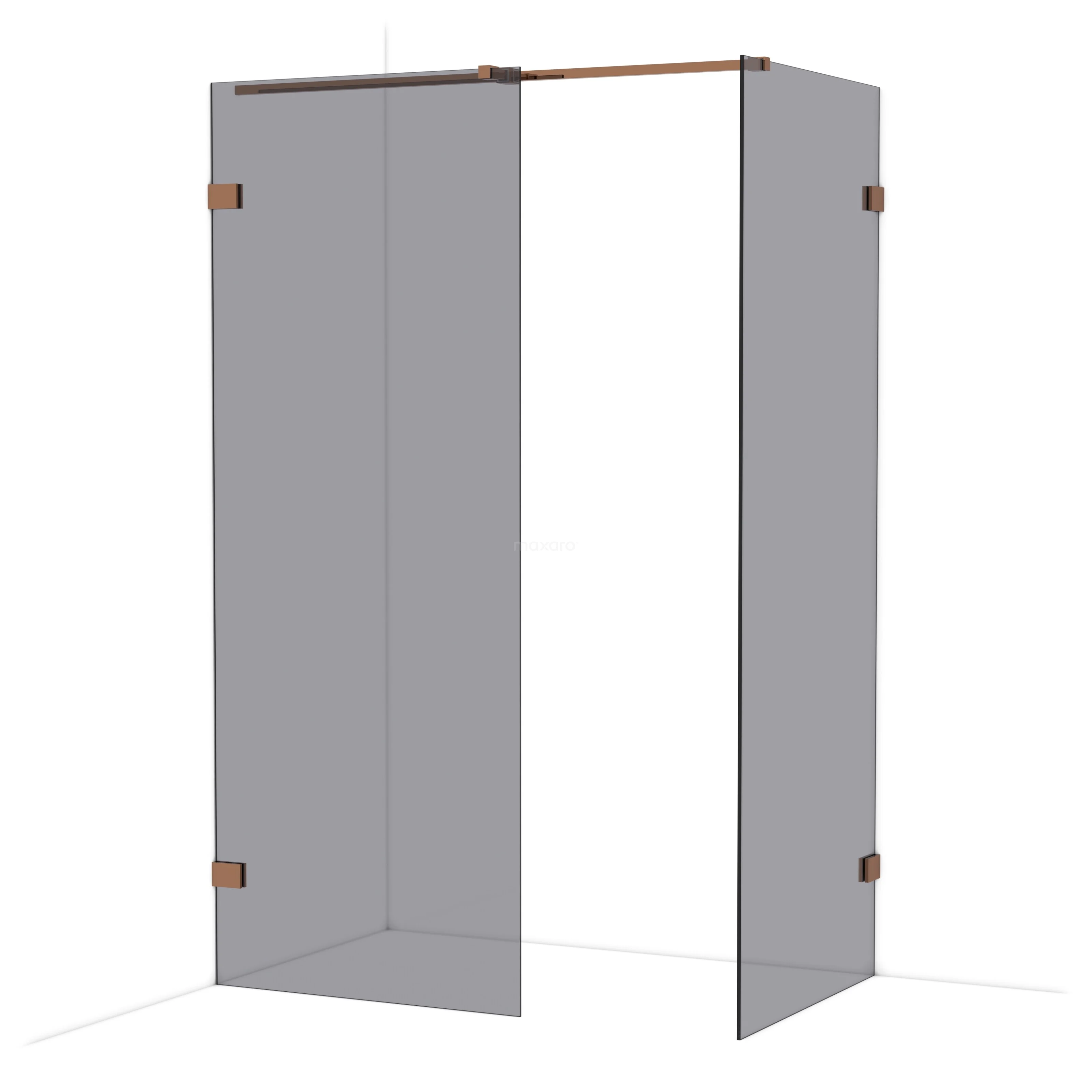 Diamond Inloopdouche | 80x80 cm Glanzend koper Rookglas 2 vaste wanden