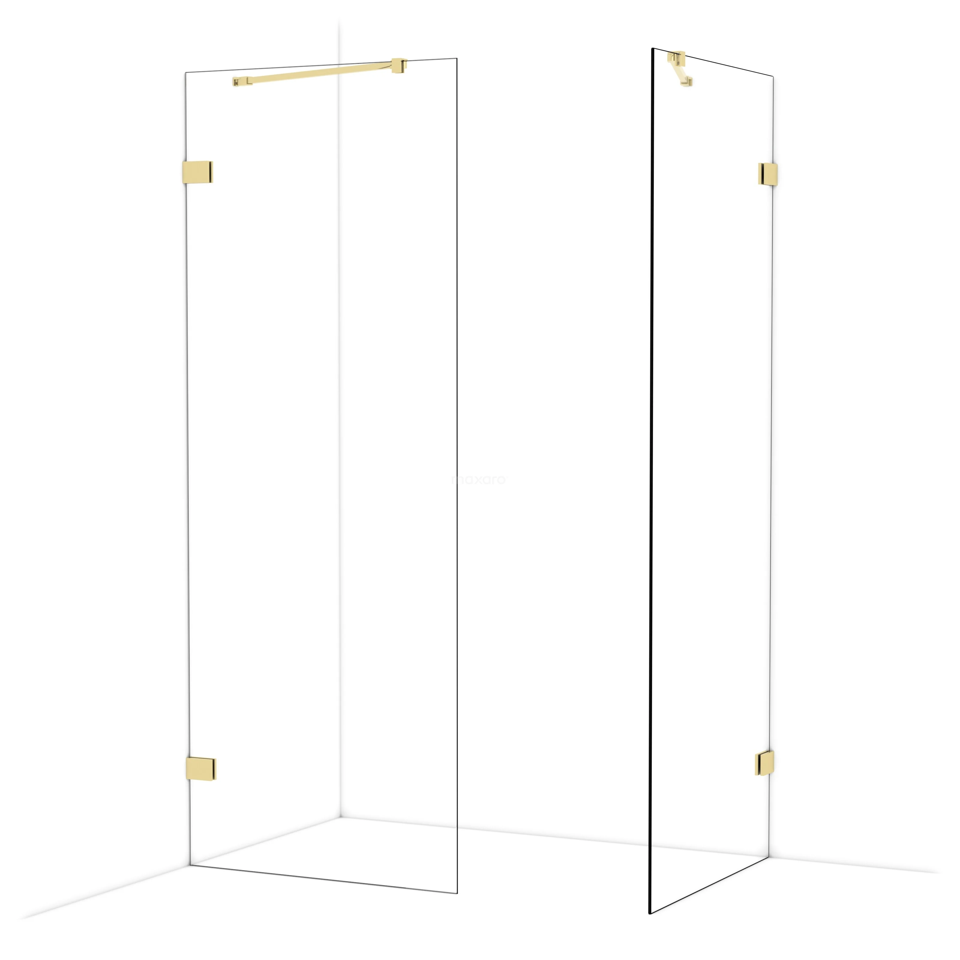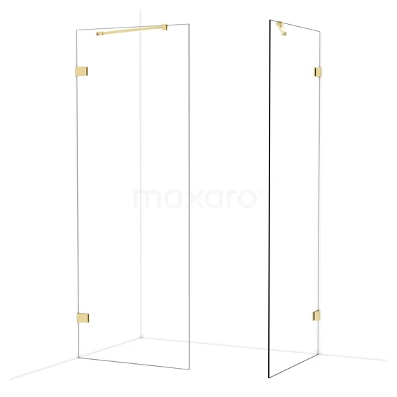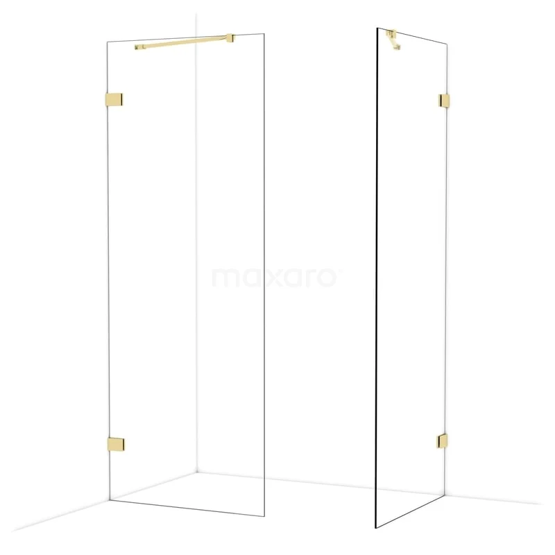 Diamond Inloopdouche | 80x80 cm Glanzend lichtgoud Helder glas 2 vaste wanden