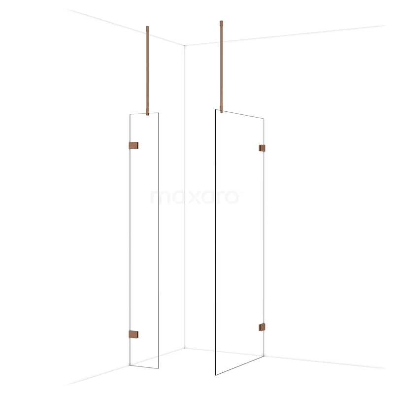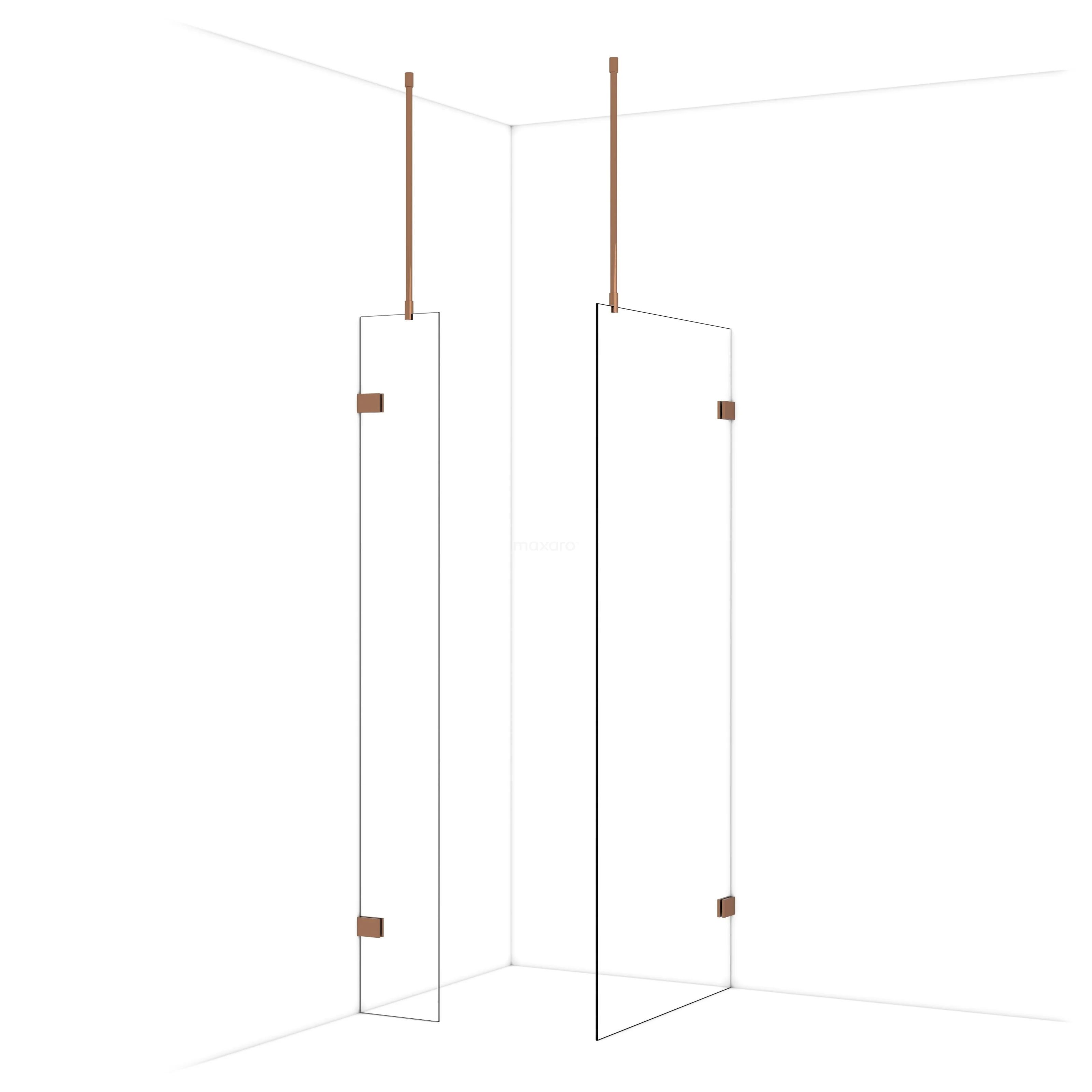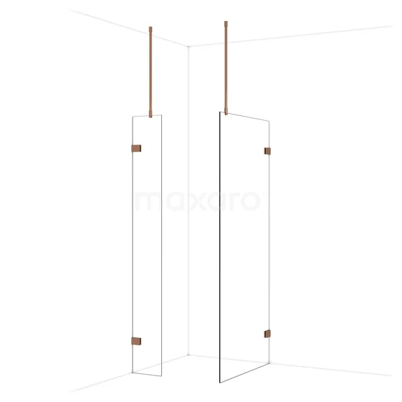 Diamond Inloopdouche | 90x30 cm Glanzend koper Helder glas 2 vaste wanden