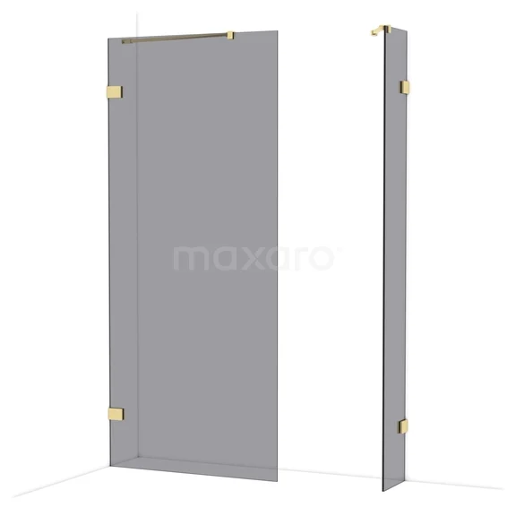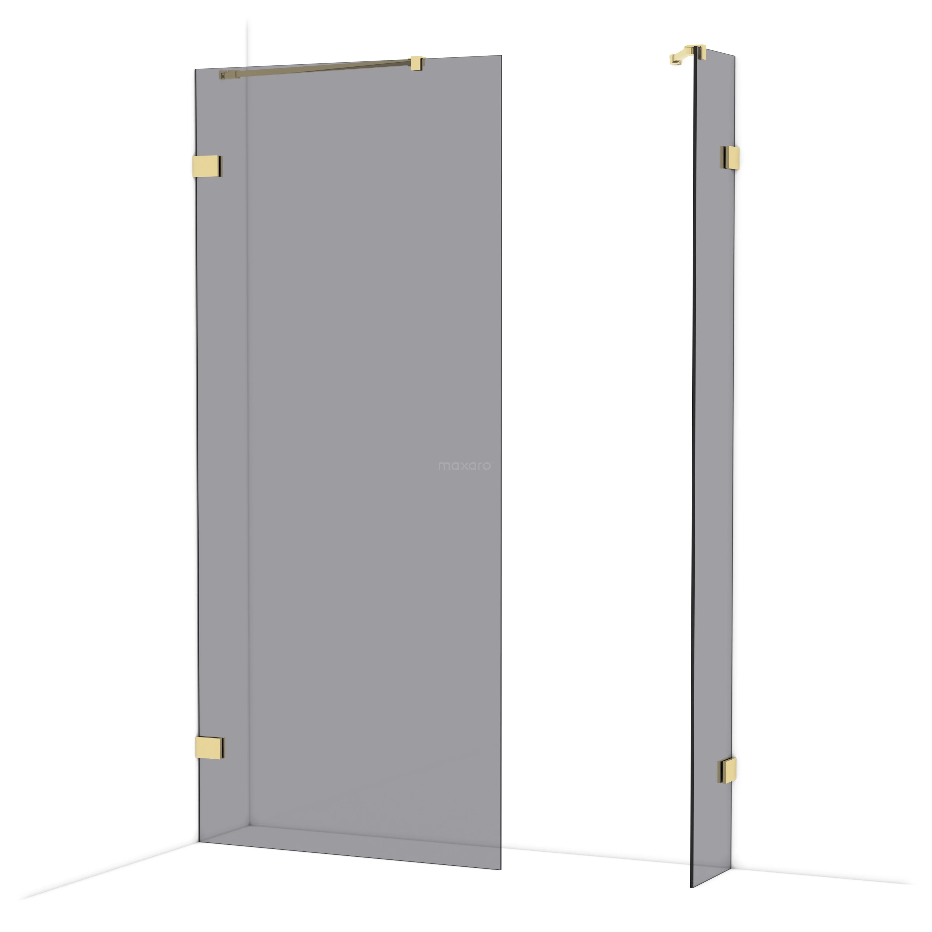 Diamond Inloopdouche | 90x30 cm Glanzend lichtgoud Rookglas 2 vaste wanden
