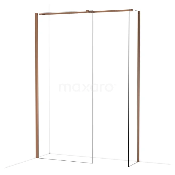 Diamond Inloopdouche | 90x40 cm Glanzend koper Helder glas 2 vaste wanden