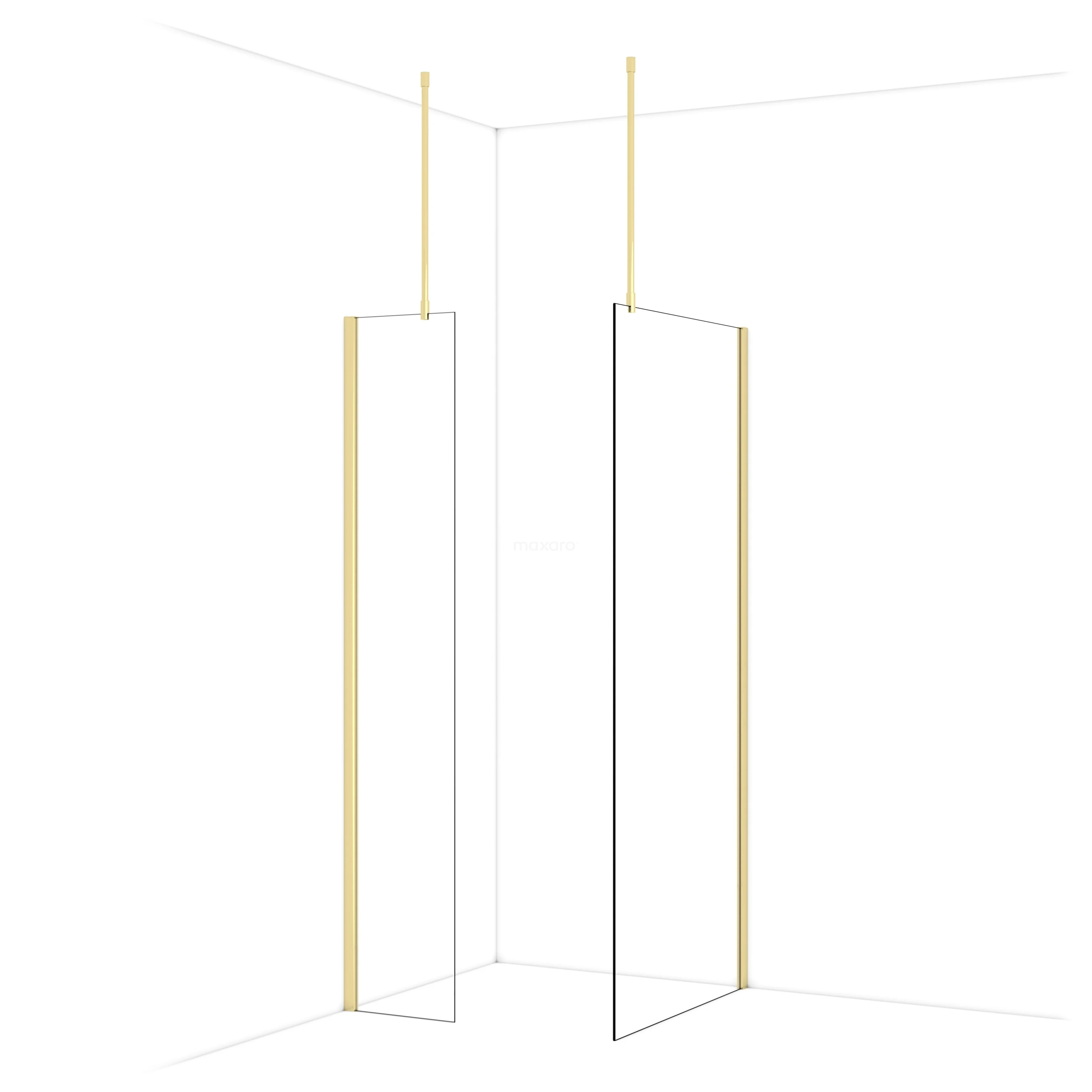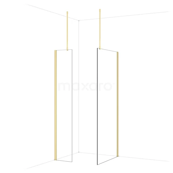 Diamond Inloopdouche | 90x40 cm Glanzend lichtgoud Helder glas 2 vaste wanden