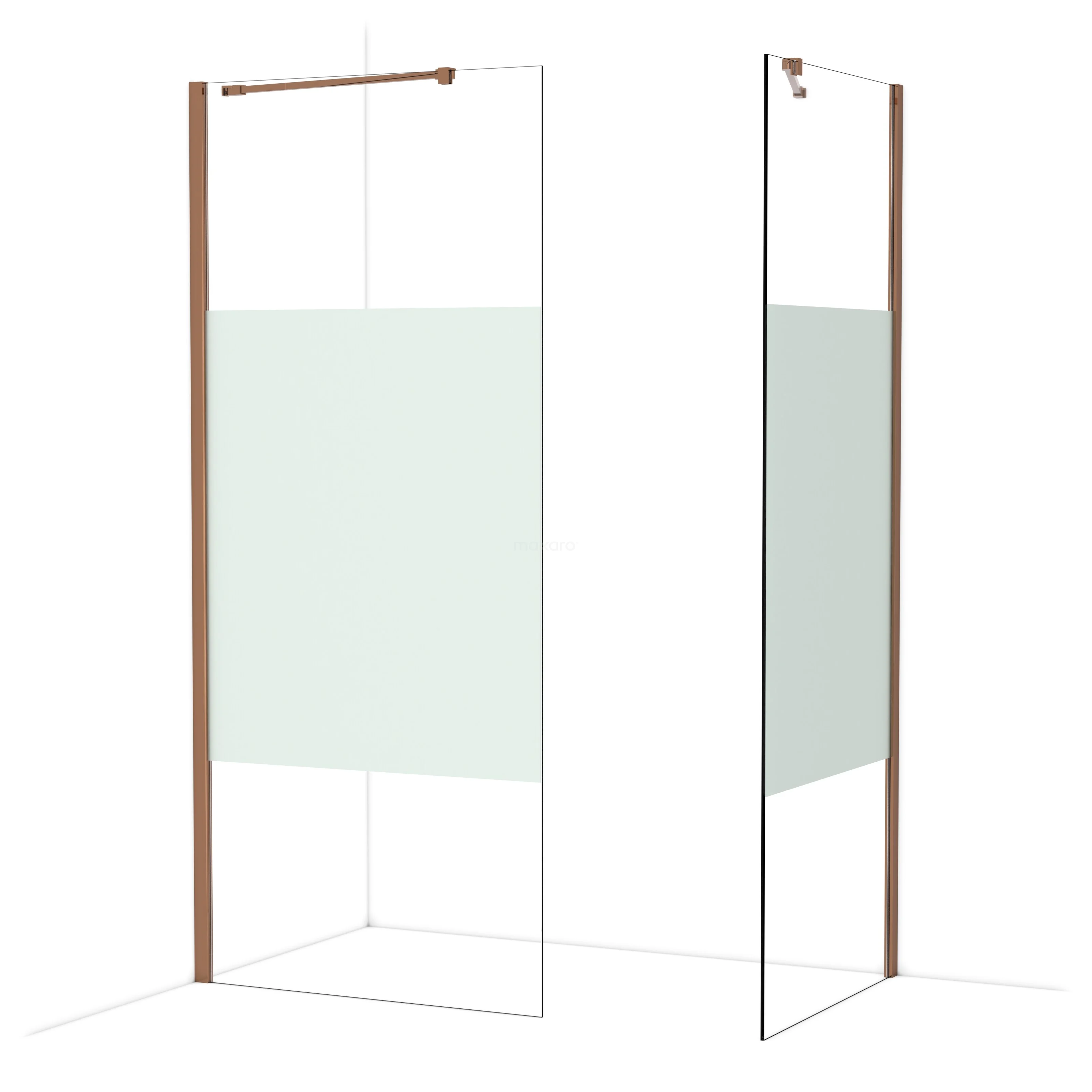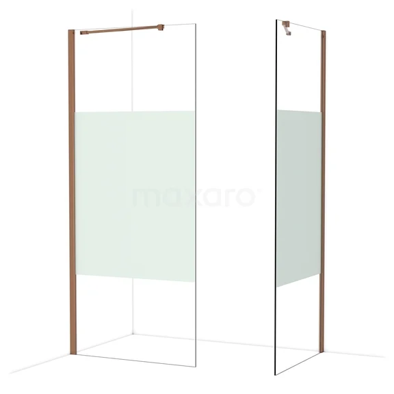 Diamond Inloopdouche | 90x80 cm Glanzend koper Helder met matte strook 2 vaste wanden