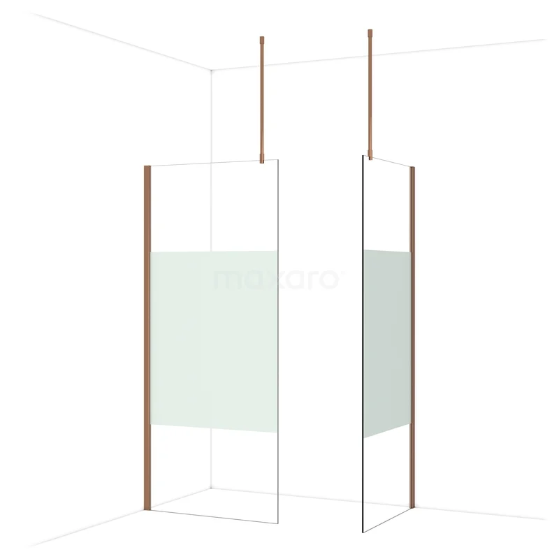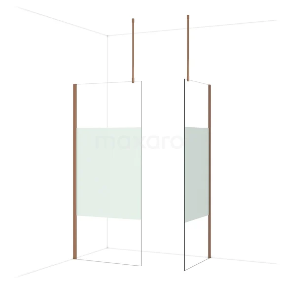Diamond Inloopdouche | 90x80 cm Glanzend koper Helder met matte strook 2 vaste wanden