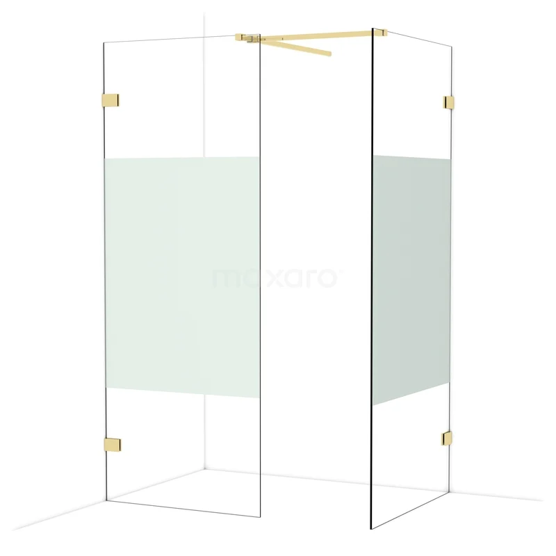 Diamond Inloopdouche | 90x80 cm Glanzend lichtgoud Helder met matte strook 2 vaste wanden