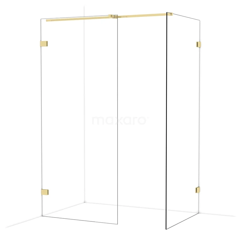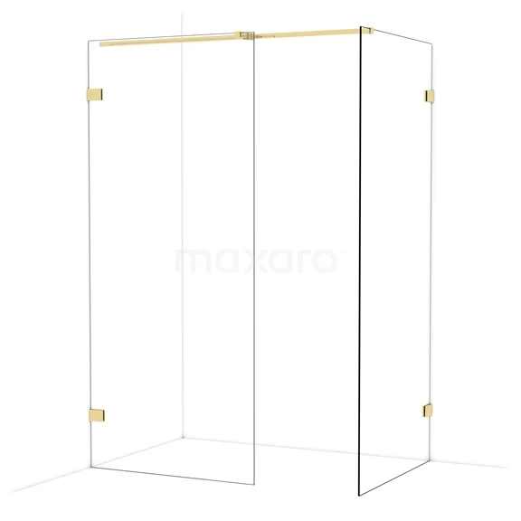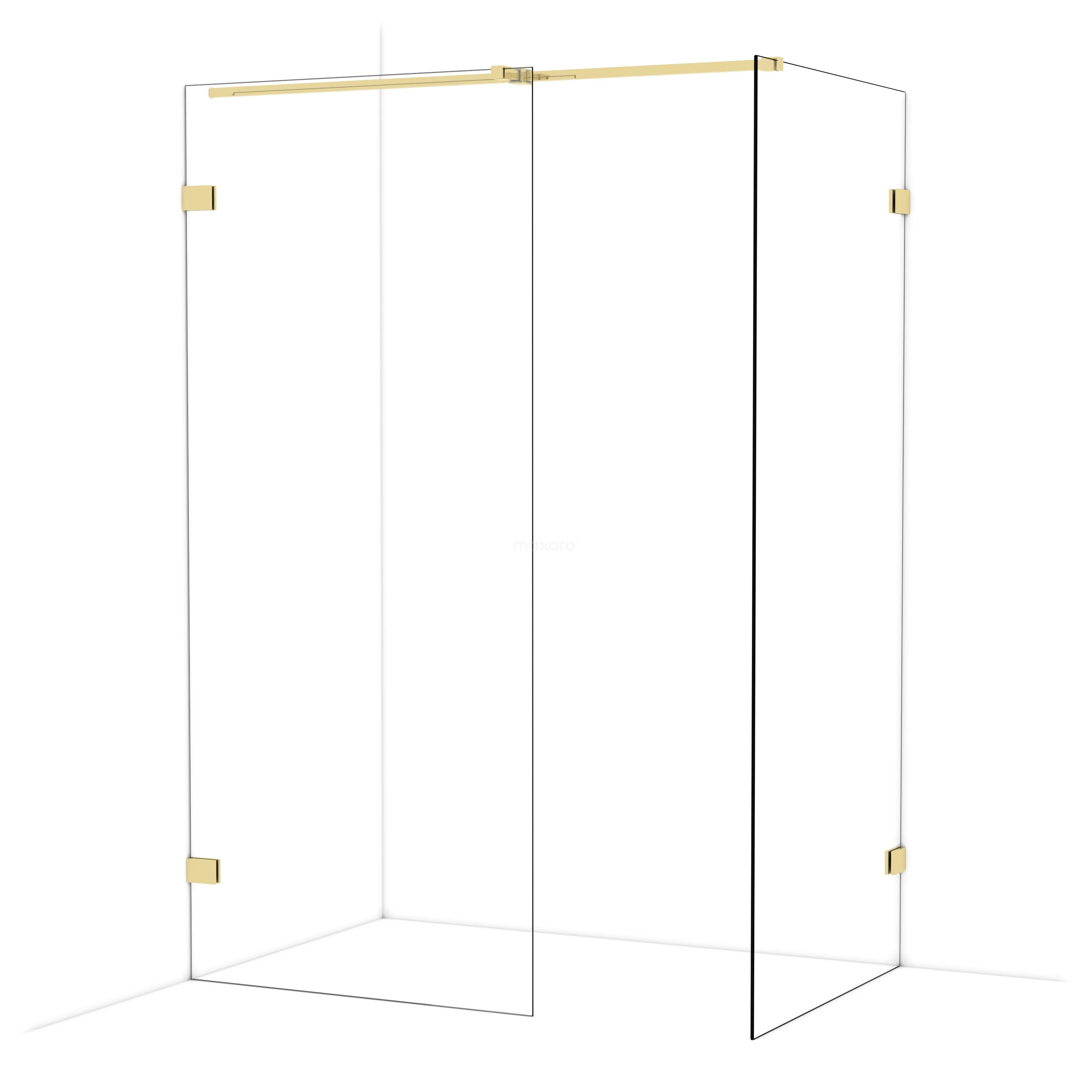 Diamond Inloopdouche | 90x90 cm Glanzend lichtgoud Helder glas 2 vaste wanden