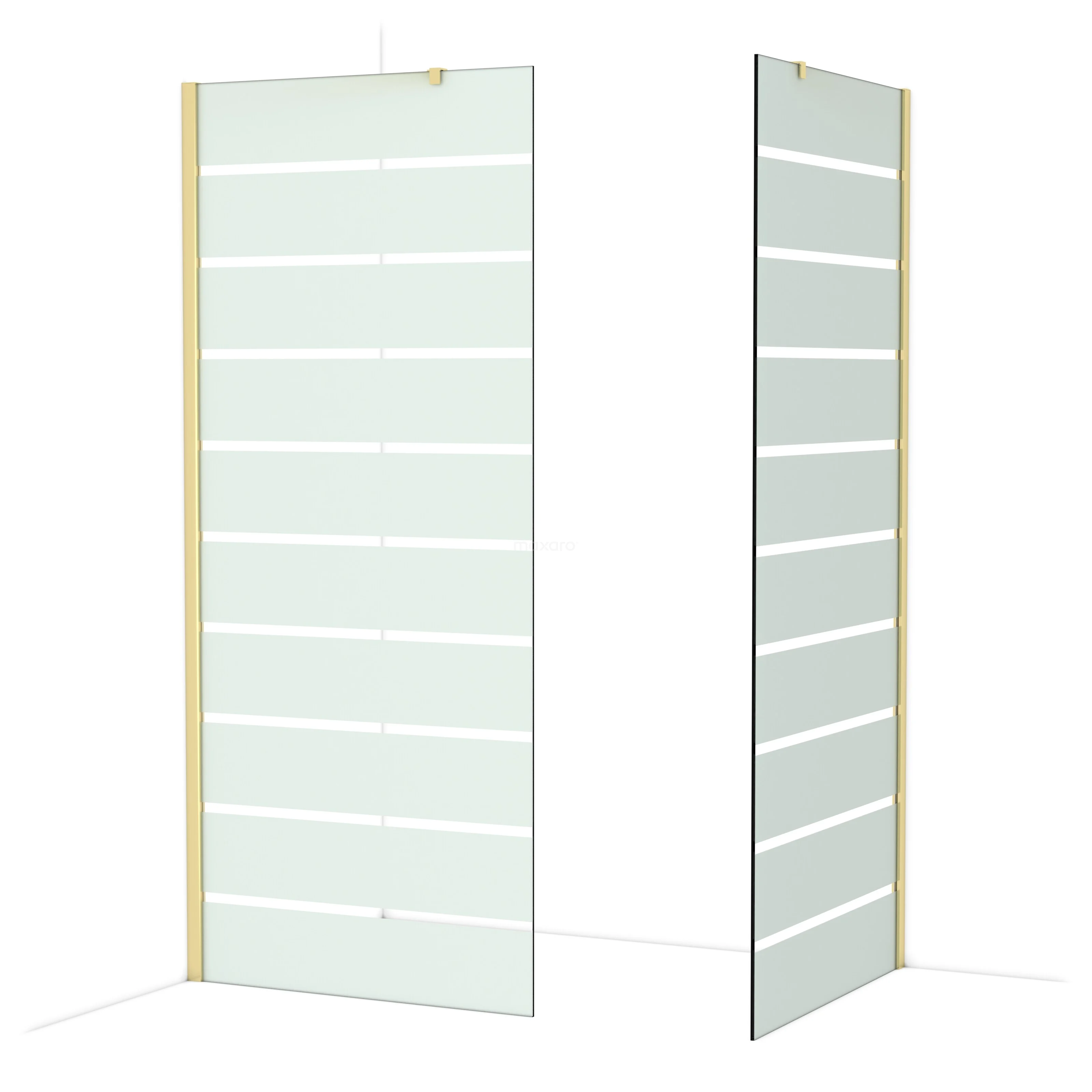 Diamond Inloopdouche | 90x90 cm Glanzend lichtgoud Helder met matte strepen 2 vaste wanden