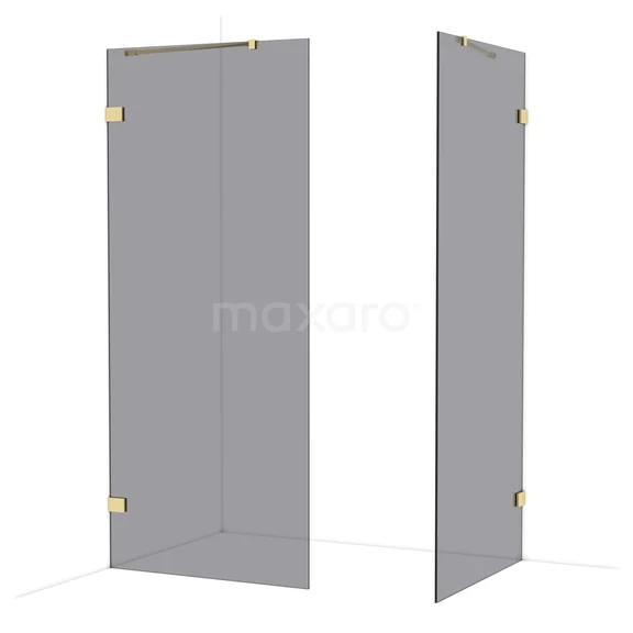 Diamond Inloopdouche | 90x90 cm Glanzend lichtgoud Rookglas 2 vaste wanden