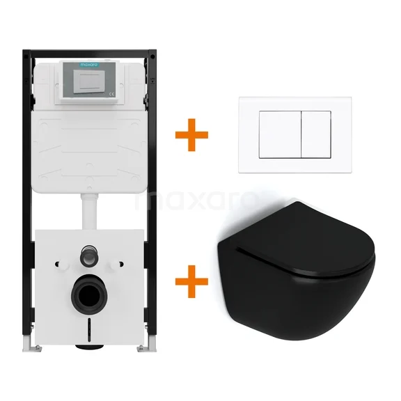 Met deze complete toiletset haal je in één keer alles in huis voor een stijlvol, functioneel en betaalbaar hangtoilet. De set bevat een mat zwart Colorato hangtoilet, een softclose toiletzitting, het hoogwaardige Maxaro Flush Pro-inbouwreservoir en een strak vormgegeven bedieningspaneel. Dankzij de perfecte afstemming tussen de onderdelen geniet je van optimale prestaties en comfort, zonder onnodige kosten.