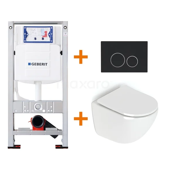 Toiletset Hoogglans wit zonder Spoelrand + Geberit UP320 inbouwreservoir met geluidsisolatie