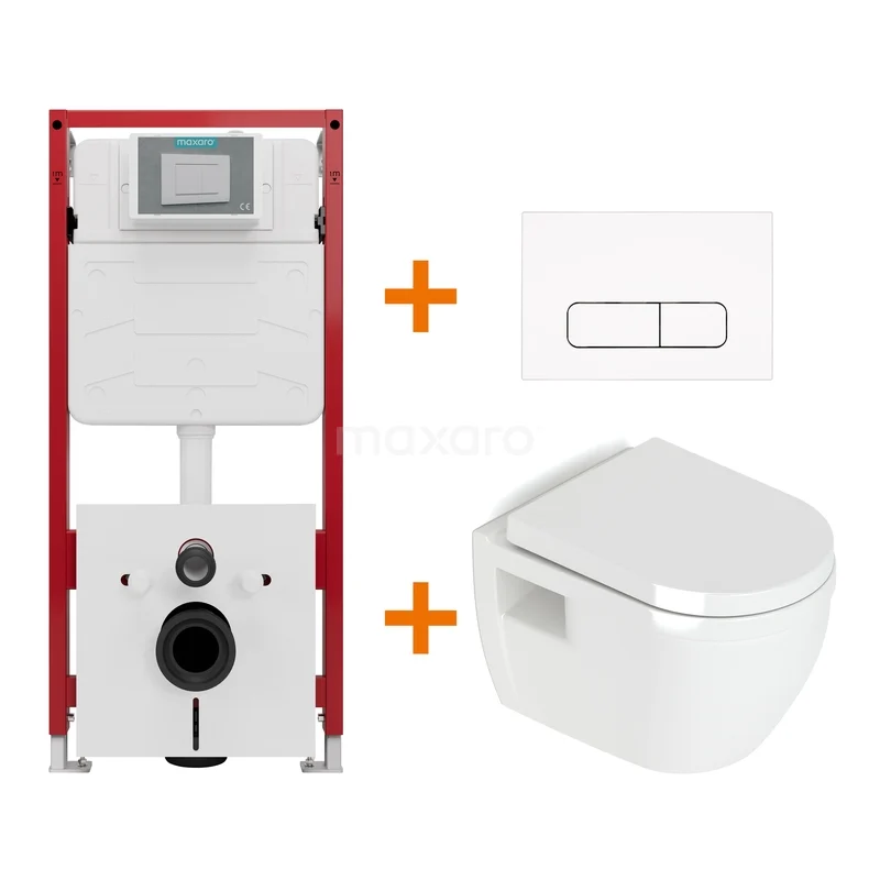 Toiletset Hoogglans wit met Spoelrand + Maxaro Flush Pro inbouwreservoir met geluidsisolatie