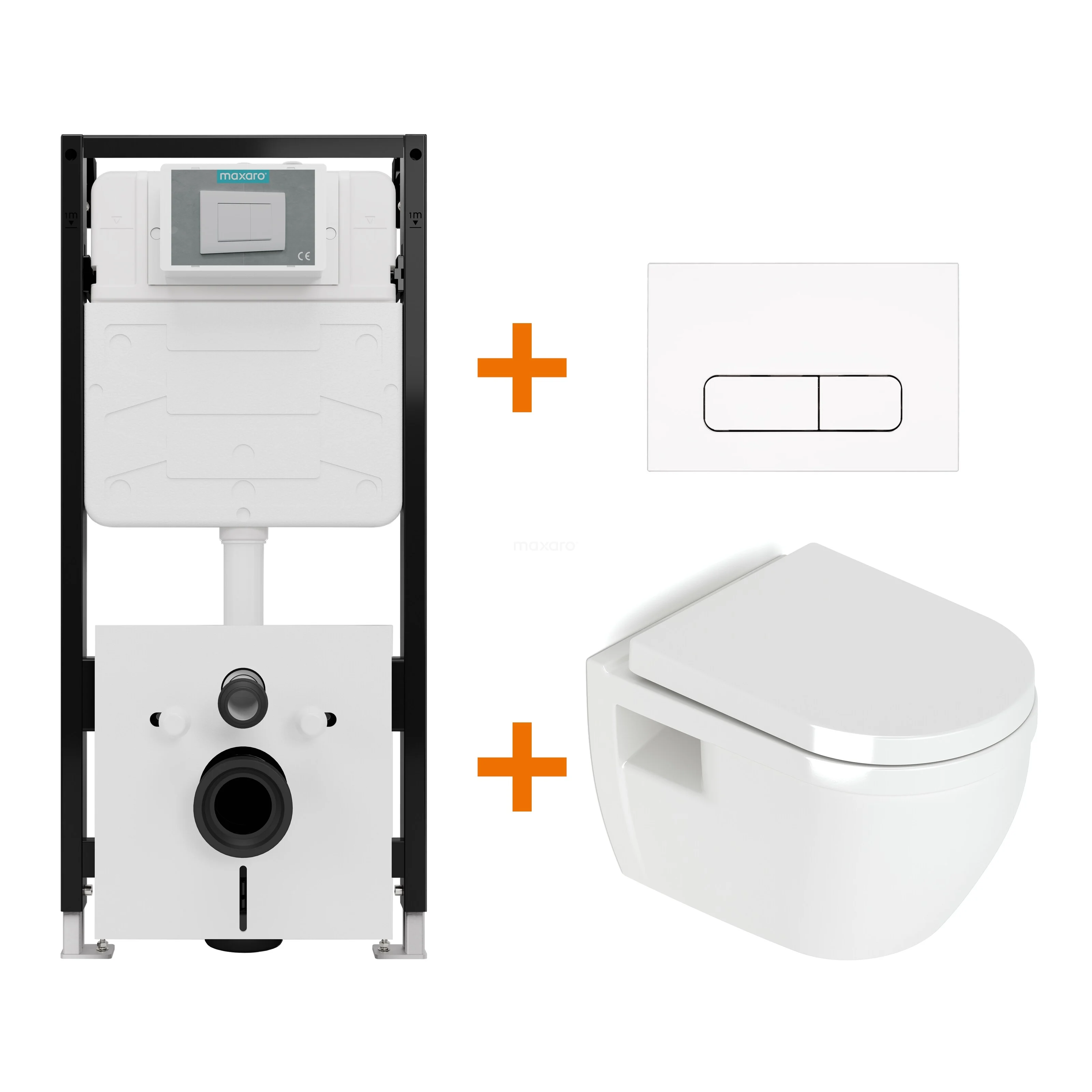 Toiletset Hoogglans wit met Spoelrand + Maxaro Flush Slim Pro inbouwreservoir met geluidsisolatie