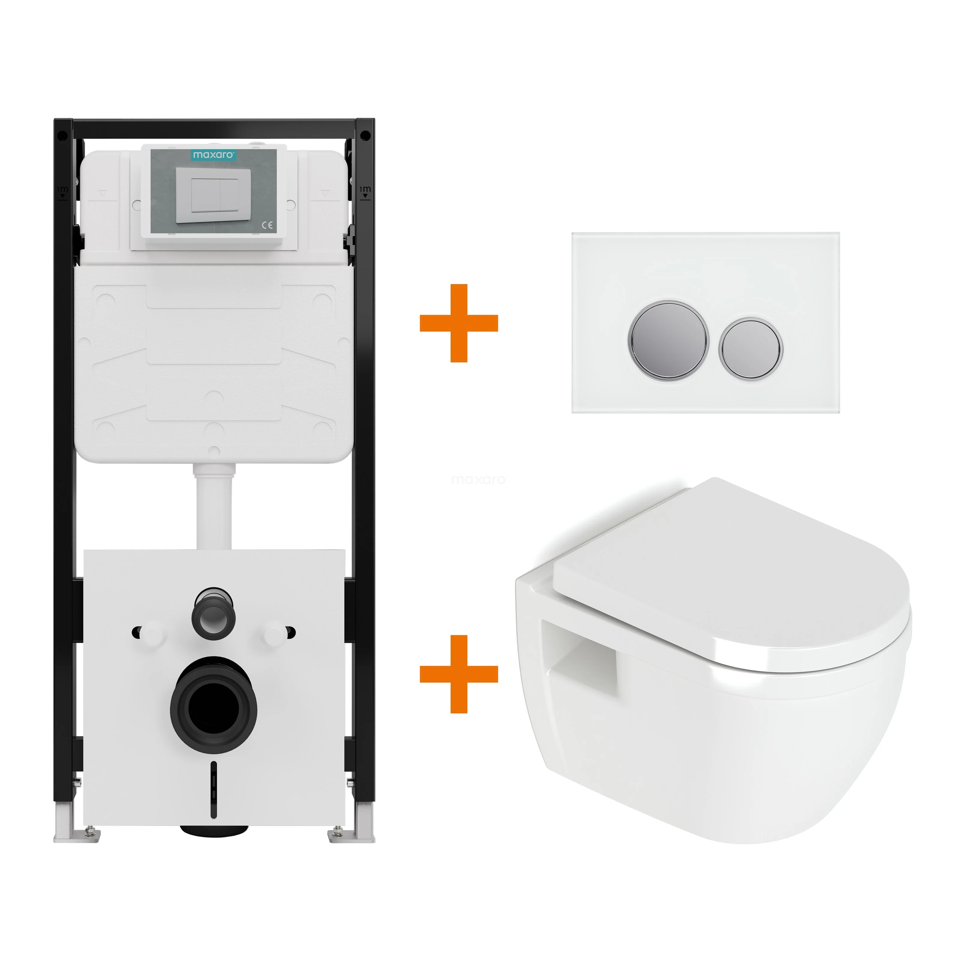 Toiletset Hoogglans wit met Spoelrand + Maxaro Flush Slim Pro inbouwreservoir met geluidsisolatie