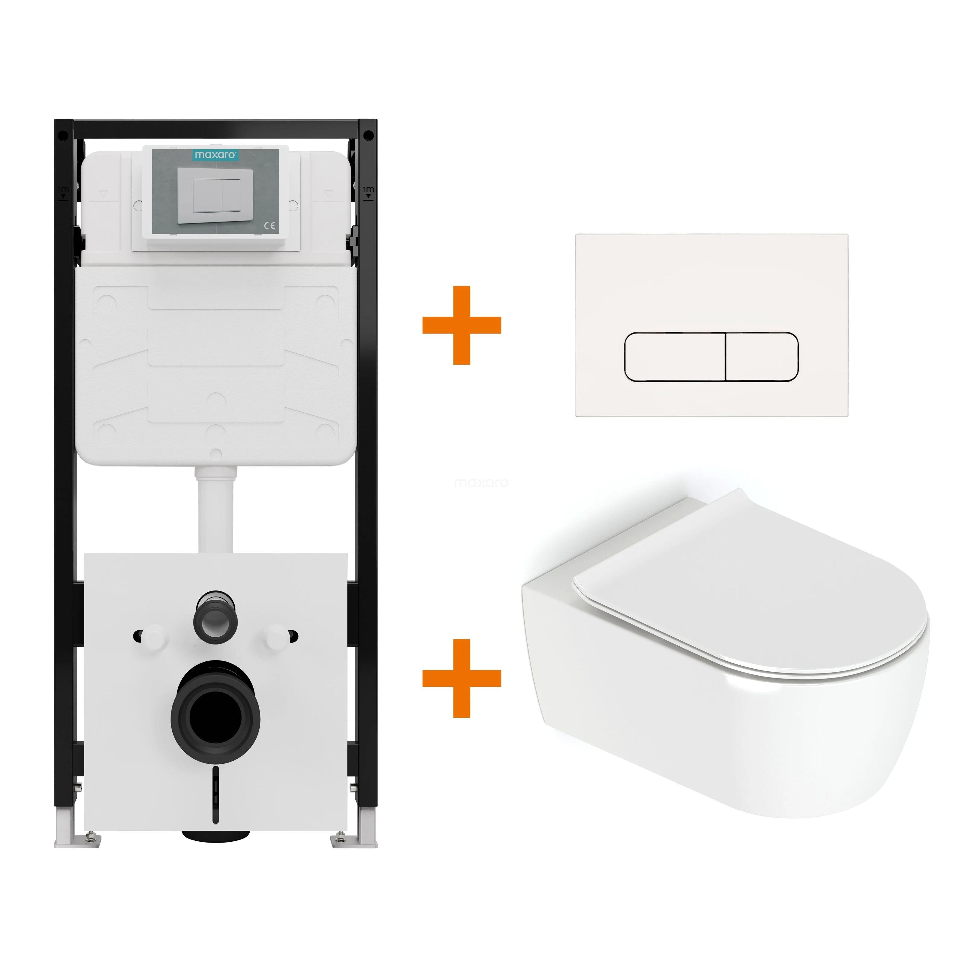 Toiletset Hoogglans wit met Spoelrand + Maxaro Flush Slim Pro inbouwreservoir met geluidsisolatie