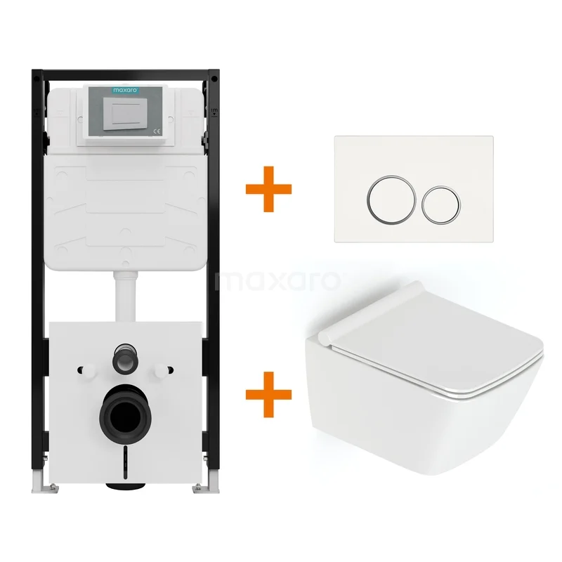 Toiletset Hoogglans wit met Spoelrand + Maxaro Flush Slim Pro inbouwreservoir met geluidsisolatie