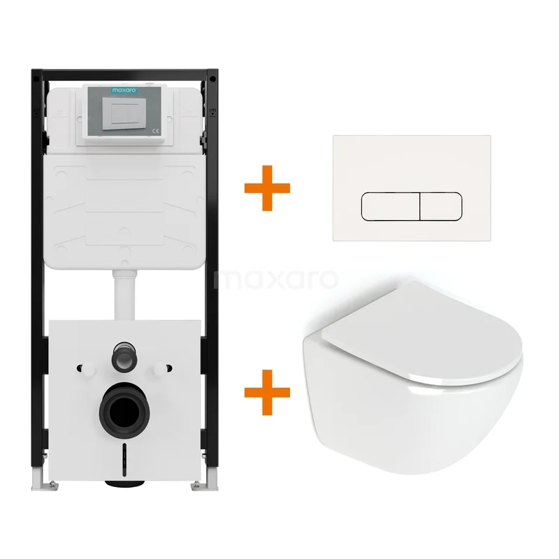 Toiletset Hoogglans wit zonder Spoelrand + Maxaro Flush Pro inbouwreservoir met geluidsisolatie