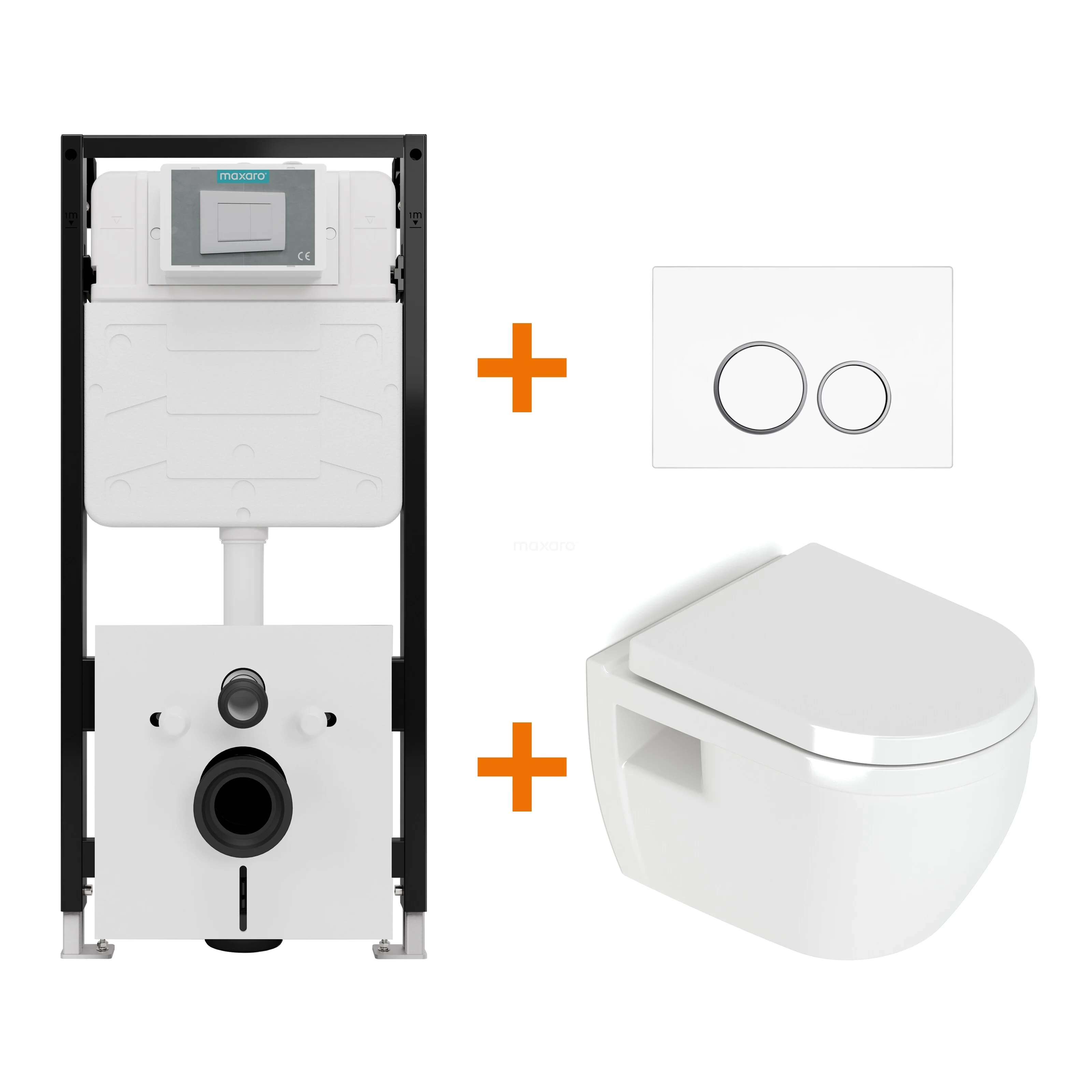 Toiletset Hoogglans wit zonder Spoelrand + Maxaro Flush Slim Pro inbouwreservoir met geluidsisolatie