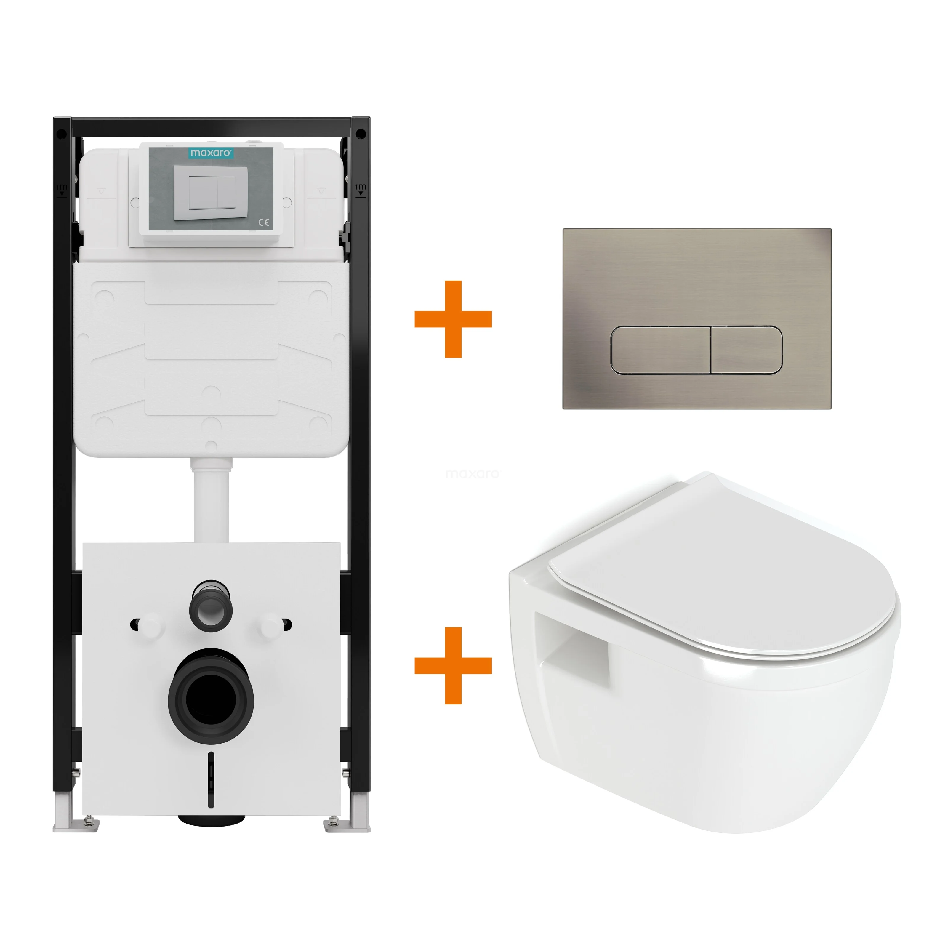 Toiletset Hoogglans wit zonder Spoelrand + Maxaro Flush Slim Pro inbouwreservoir met geluidsisolatie