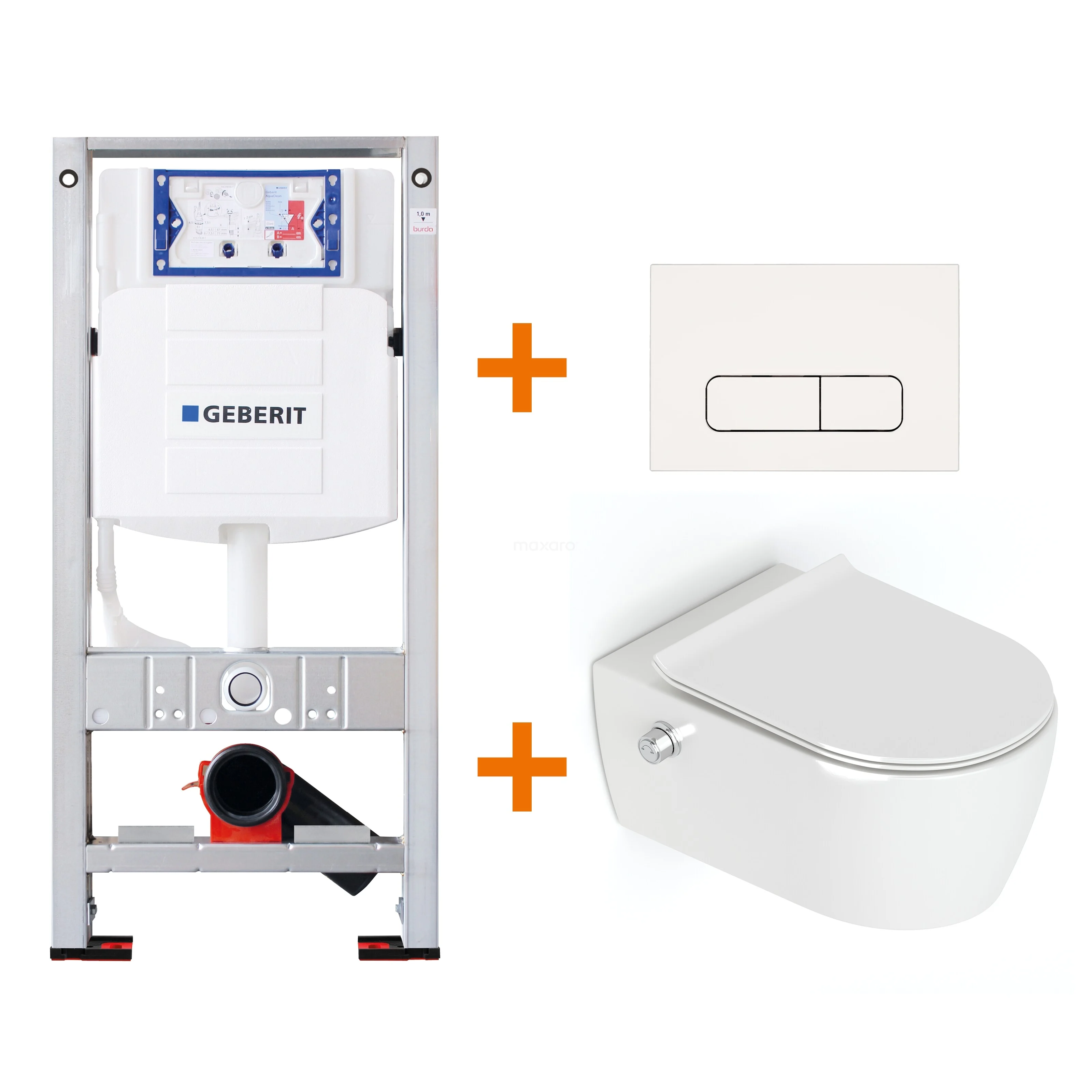 Toiletset Hoogglans wit zonder Spoelrand + Maxaro Flush Slim Pro inbouwreservoir met geluidsisolatie