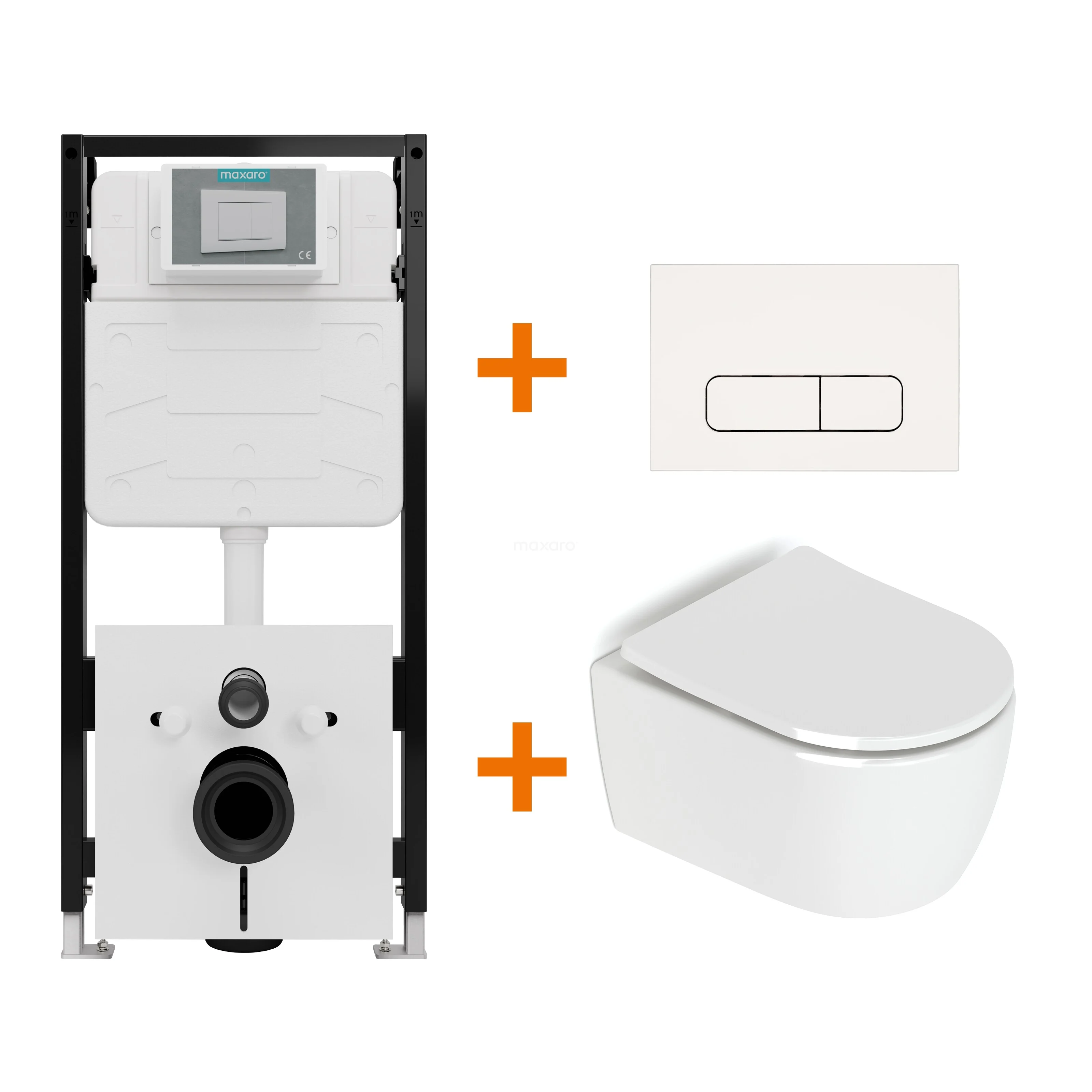 Toiletset Hoogglans wit zonder Spoelrand + Maxaro Flush Slim Pro inbouwreservoir met geluidsisolatie
