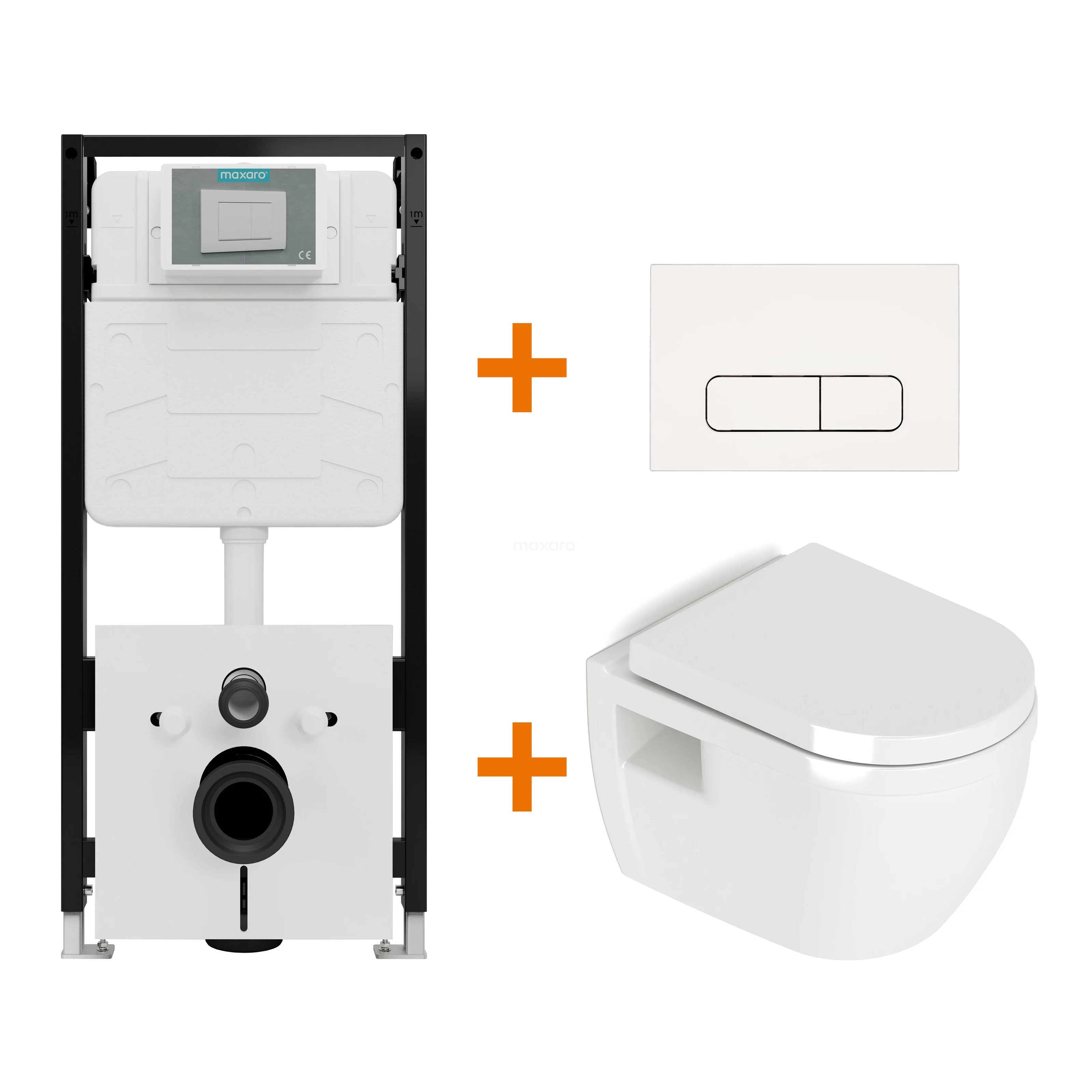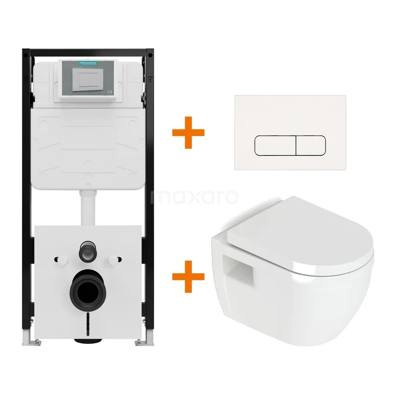 Toiletset Hoogglans wit zonder Spoelrand + Maxaro Flush Slim Pro inbouwreservoir met geluidsisolatie