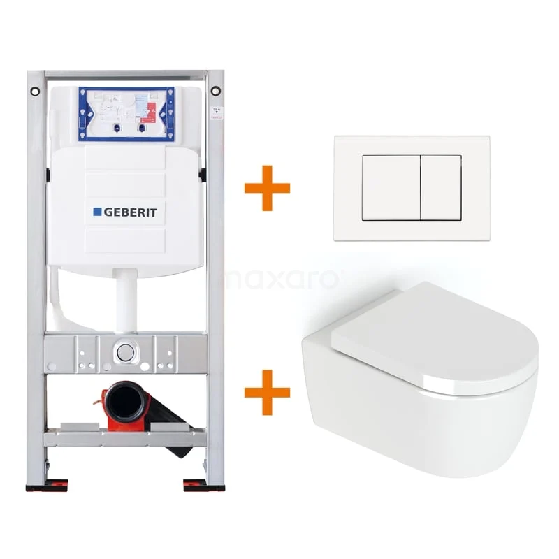 Toiletset Hoogglans wit zonder Spoelrand + Maxaro Flush Slim Pro inbouwreservoir met geluidsisolatie