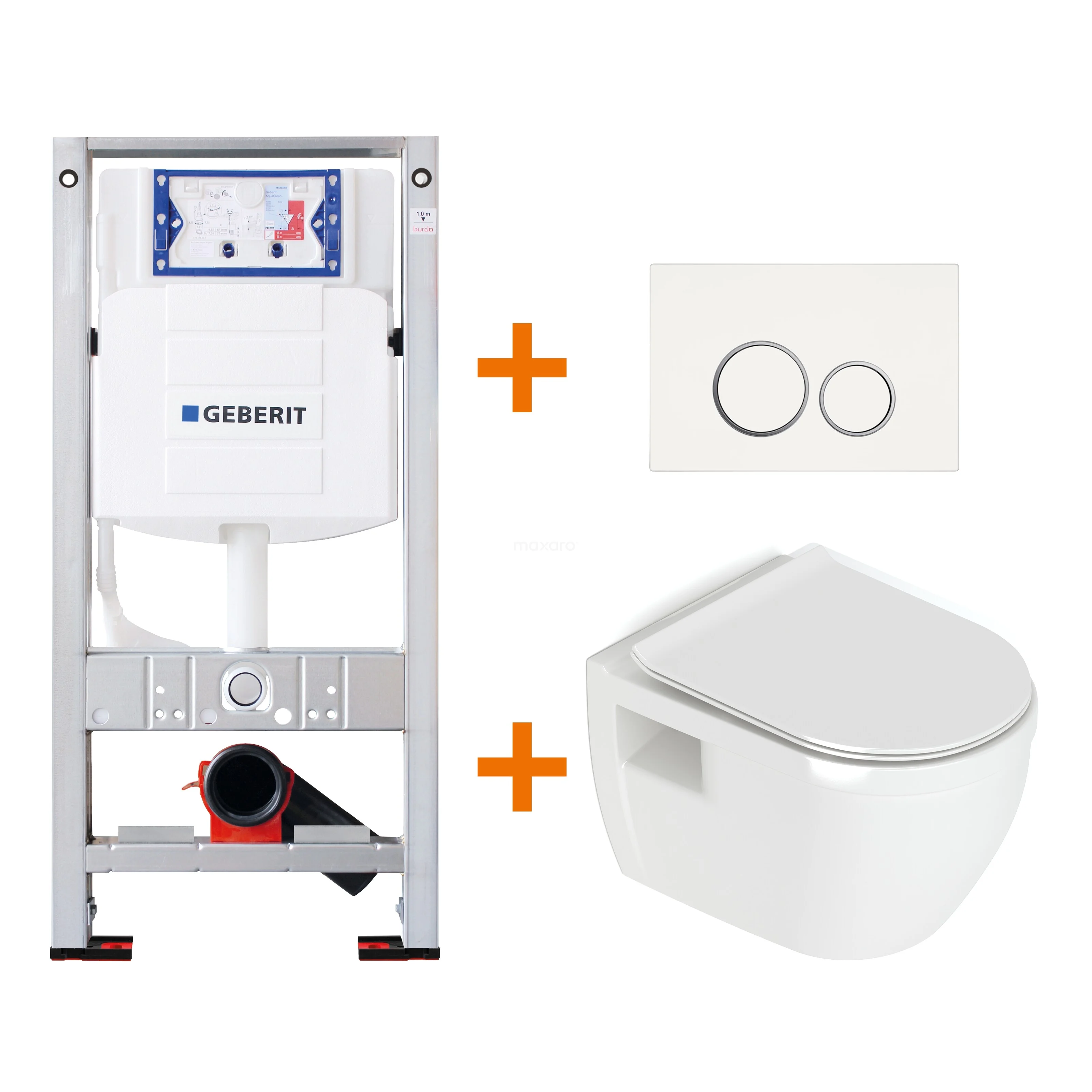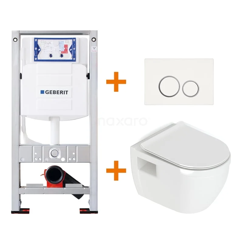 Toiletset Hoogglans wit zonder Spoelrand + Maxaro Flush Slim Pro inbouwreservoir met geluidsisolatie