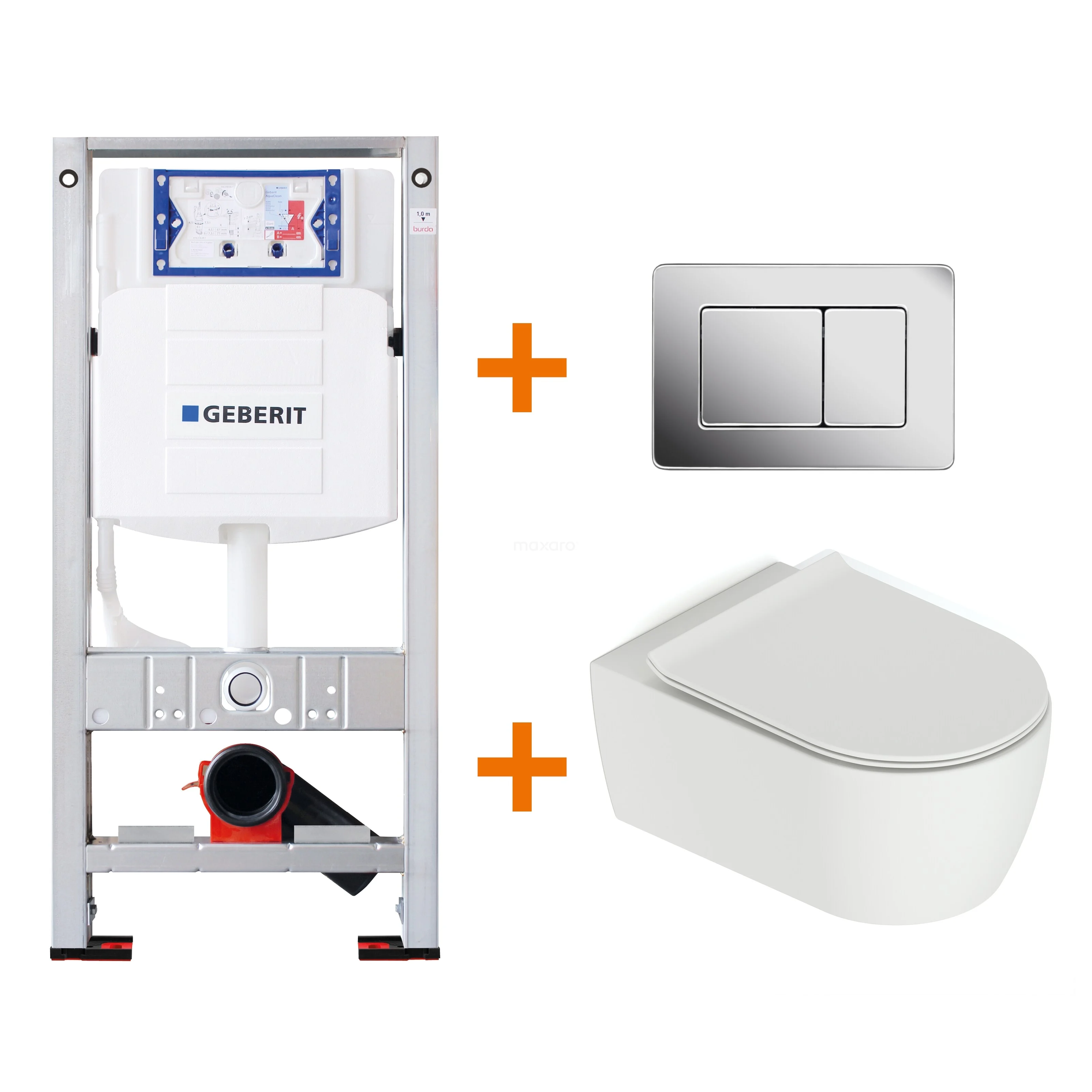 Toiletset Mat wit met Spoelrand + Geberit UP320 inbouwreservoir met geluidsisolatie