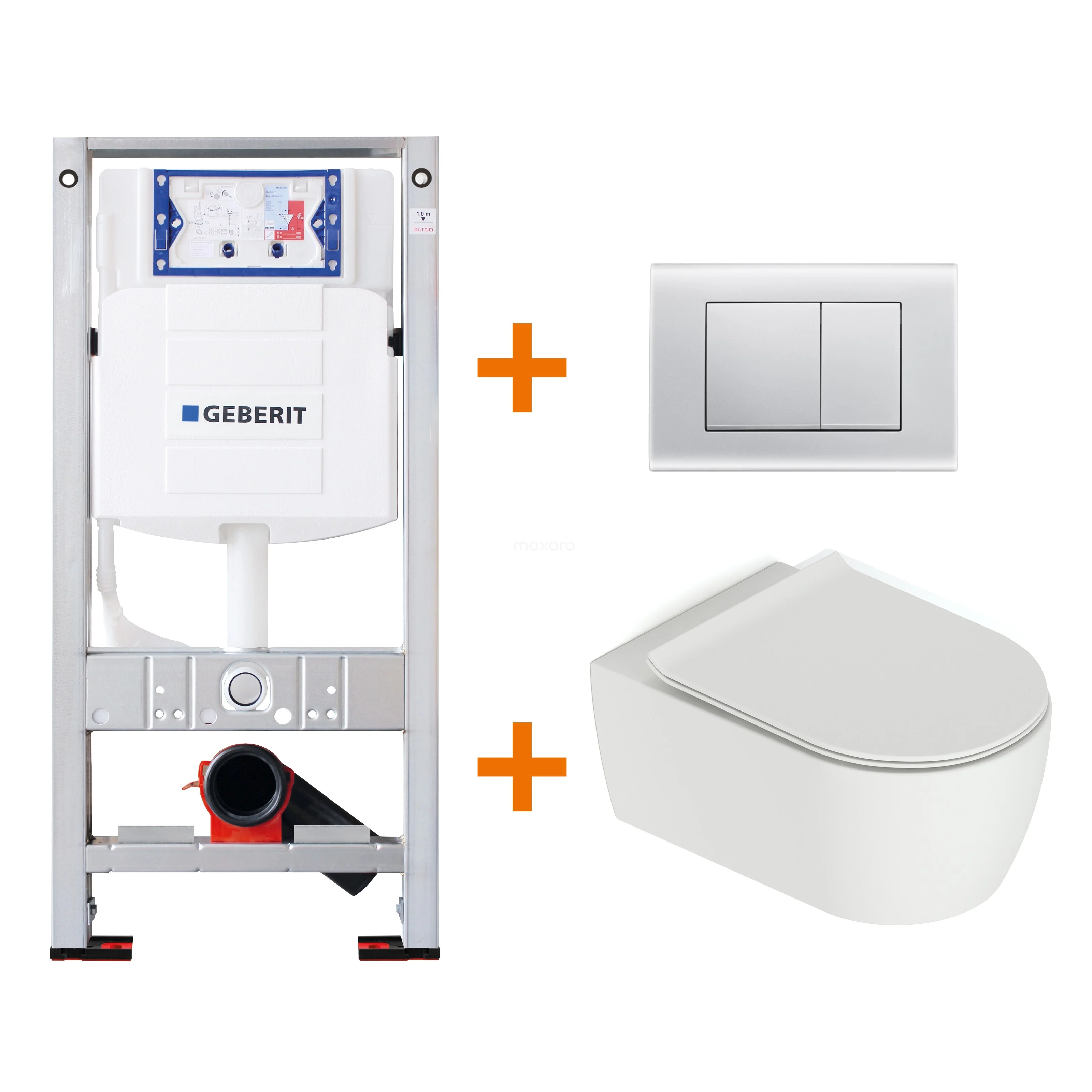 Toiletset Mat wit met Spoelrand + Geberit UP320 inbouwreservoir met geluidsisolatie