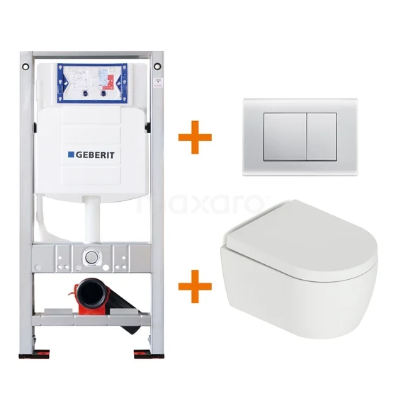 Toiletset Mat wit met Spoelrand + Geberit UP320 inbouwreservoir met geluidsisolatie