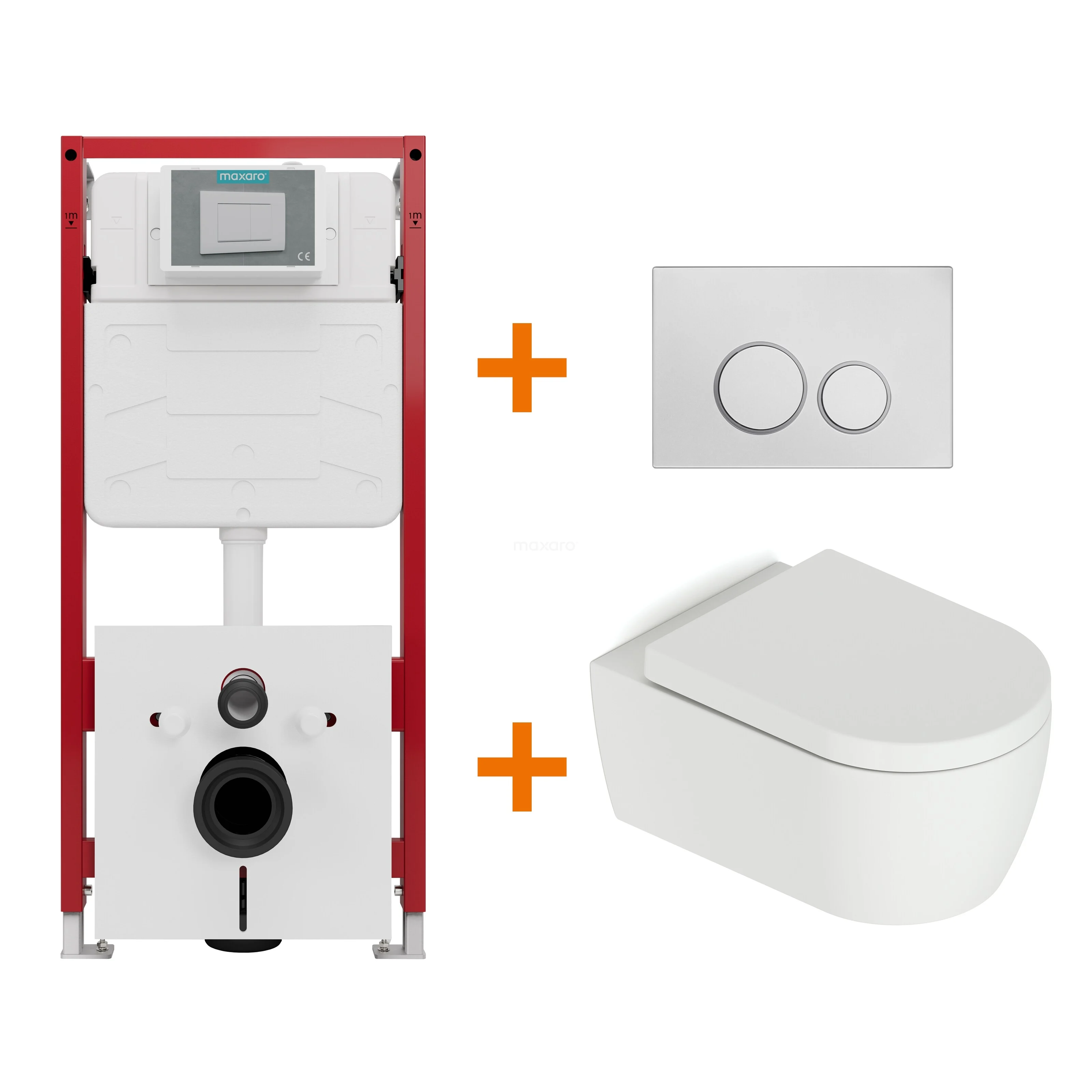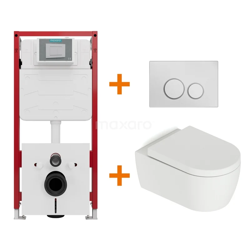 Toiletset Mat wit met Spoelrand + Maxaro Flush inbouwreservoir