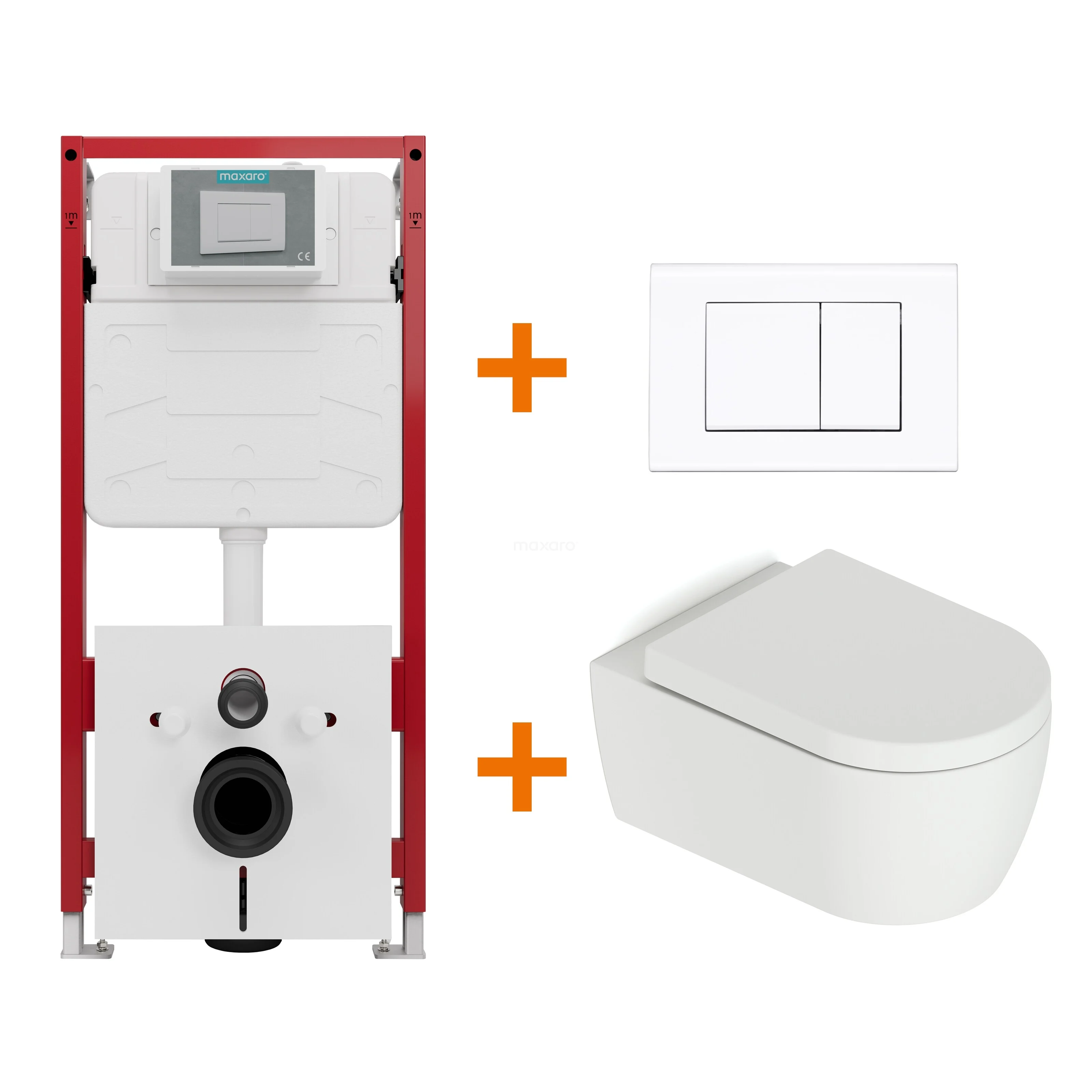 Toiletset Mat wit met Spoelrand + Maxaro Flush Pro inbouwreservoir met geluidsisolatie TOI1768