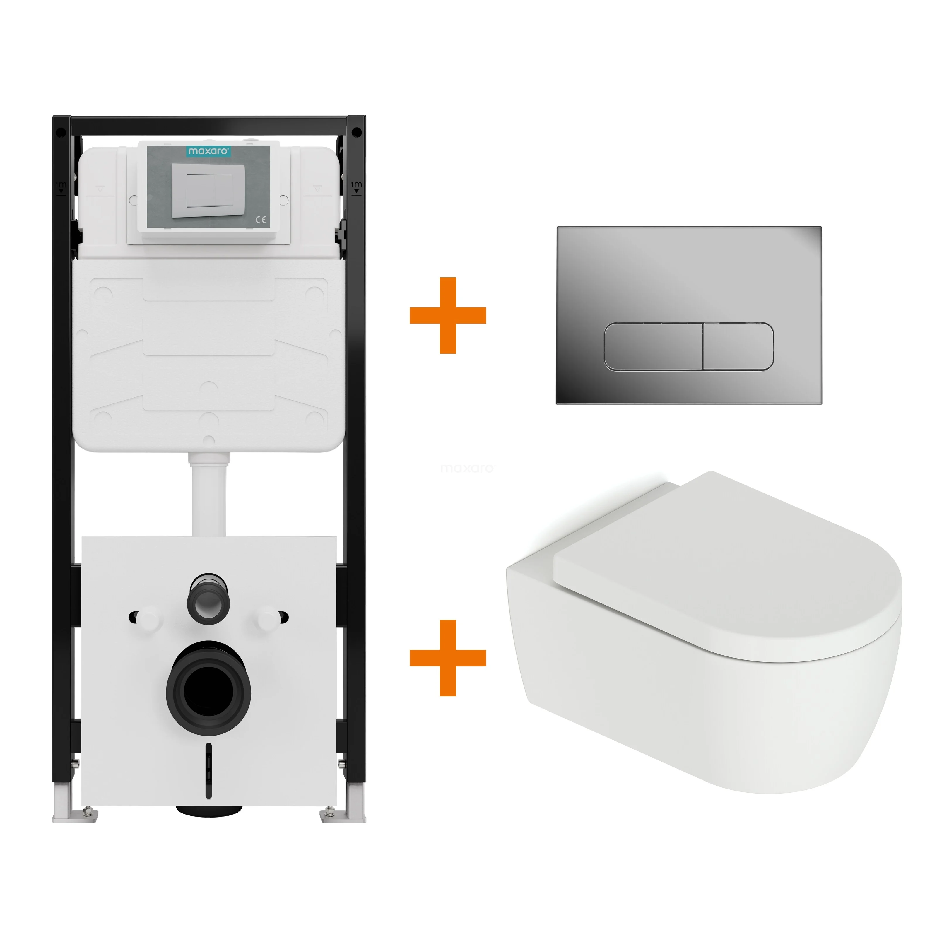 Toiletset Mat wit met Spoelrand + Maxaro Flush Pro inbouwreservoir met geluidsisolatie