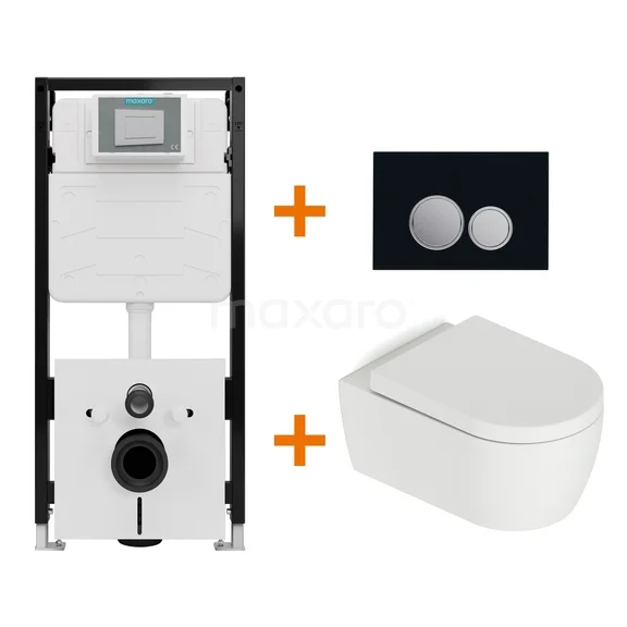 Toiletset Mat wit met Spoelrand + Maxaro Flush Pro inbouwreservoir met geluidsisolatie