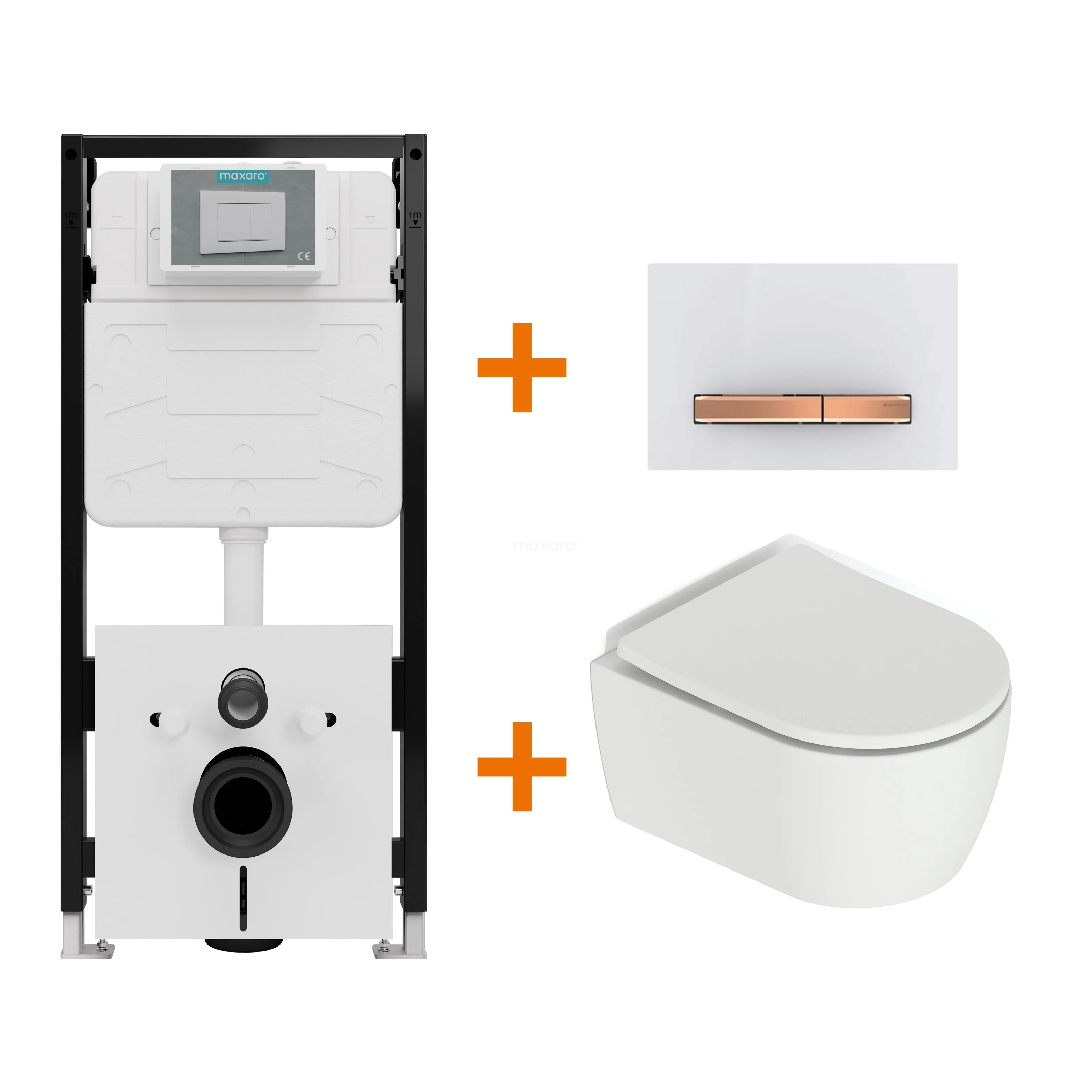 Toiletset Mat wit met Spoelrand + Maxaro Flush Pro inbouwreservoir met geluidsisolatie