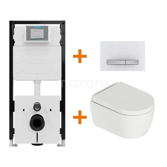 Toiletset Mat wit met Spoelrand + Maxaro Flush Pro inbouwreservoir met geluidsisolatie