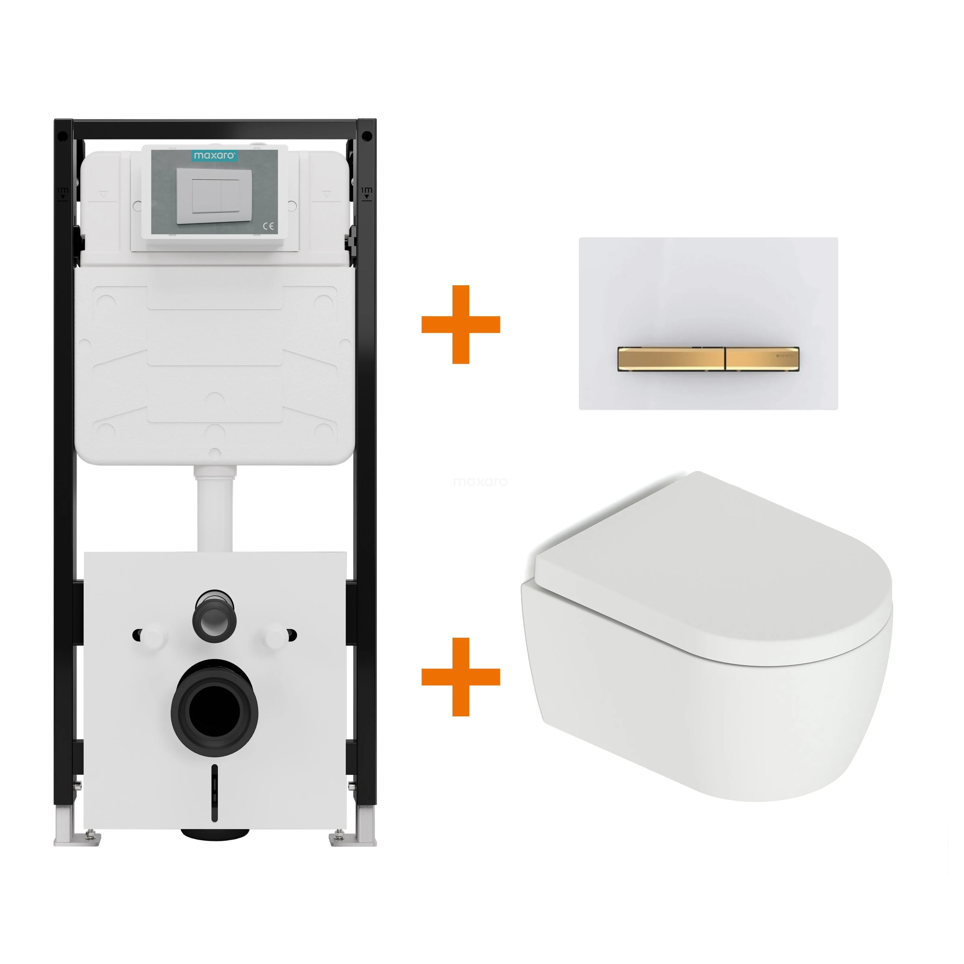 Toiletset Mat wit met Spoelrand + Maxaro Flush Pro inbouwreservoir met geluidsisolatie