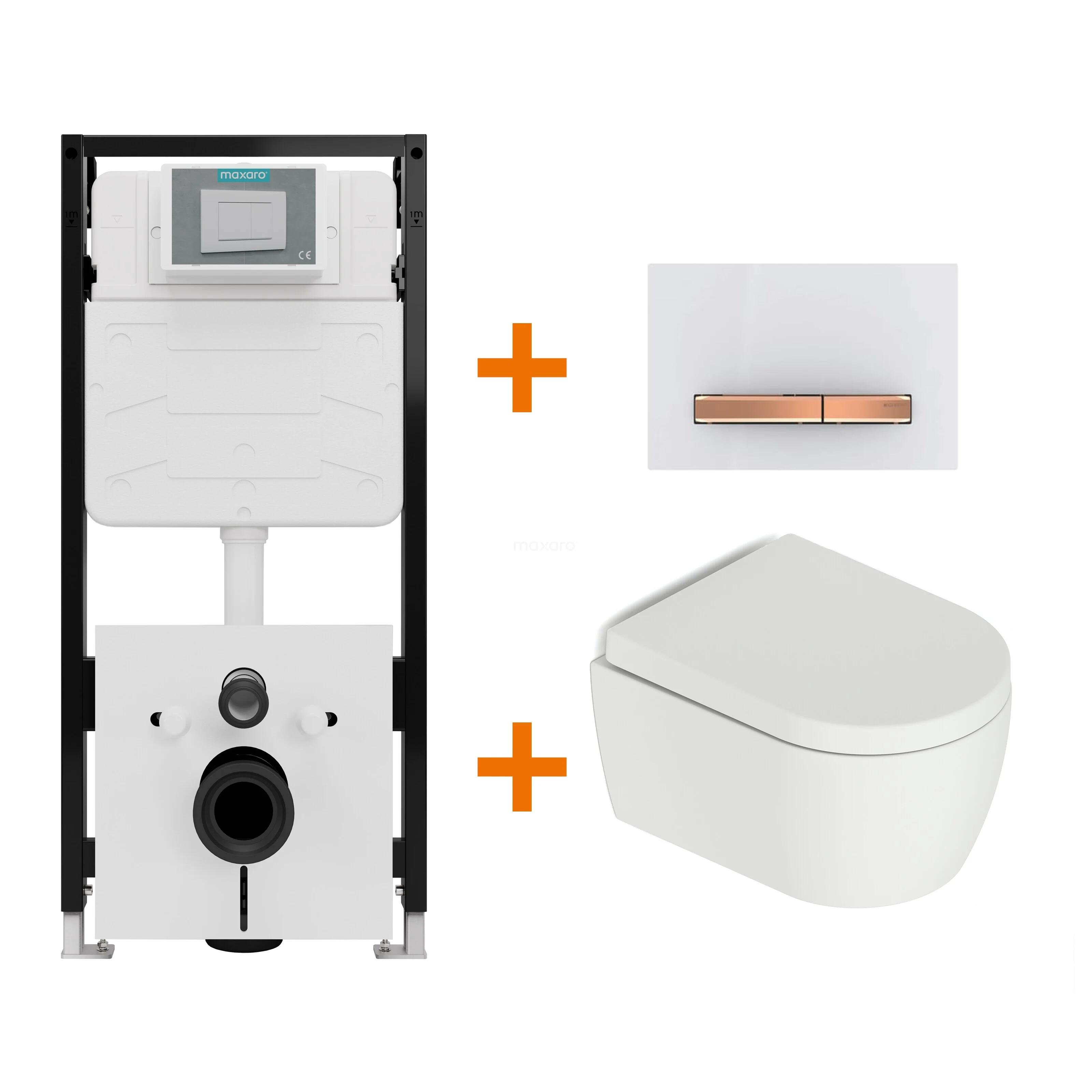 Toiletset Mat wit met Spoelrand + Maxaro Flush Slim Pro inbouwreservoir met geluidsisolatie