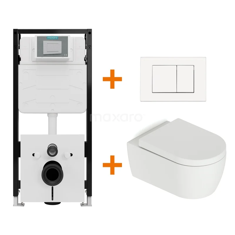 Toiletset Mat wit met Spoelrand + Maxaro Flush Slim Pro inbouwreservoir met geluidsisolatie
