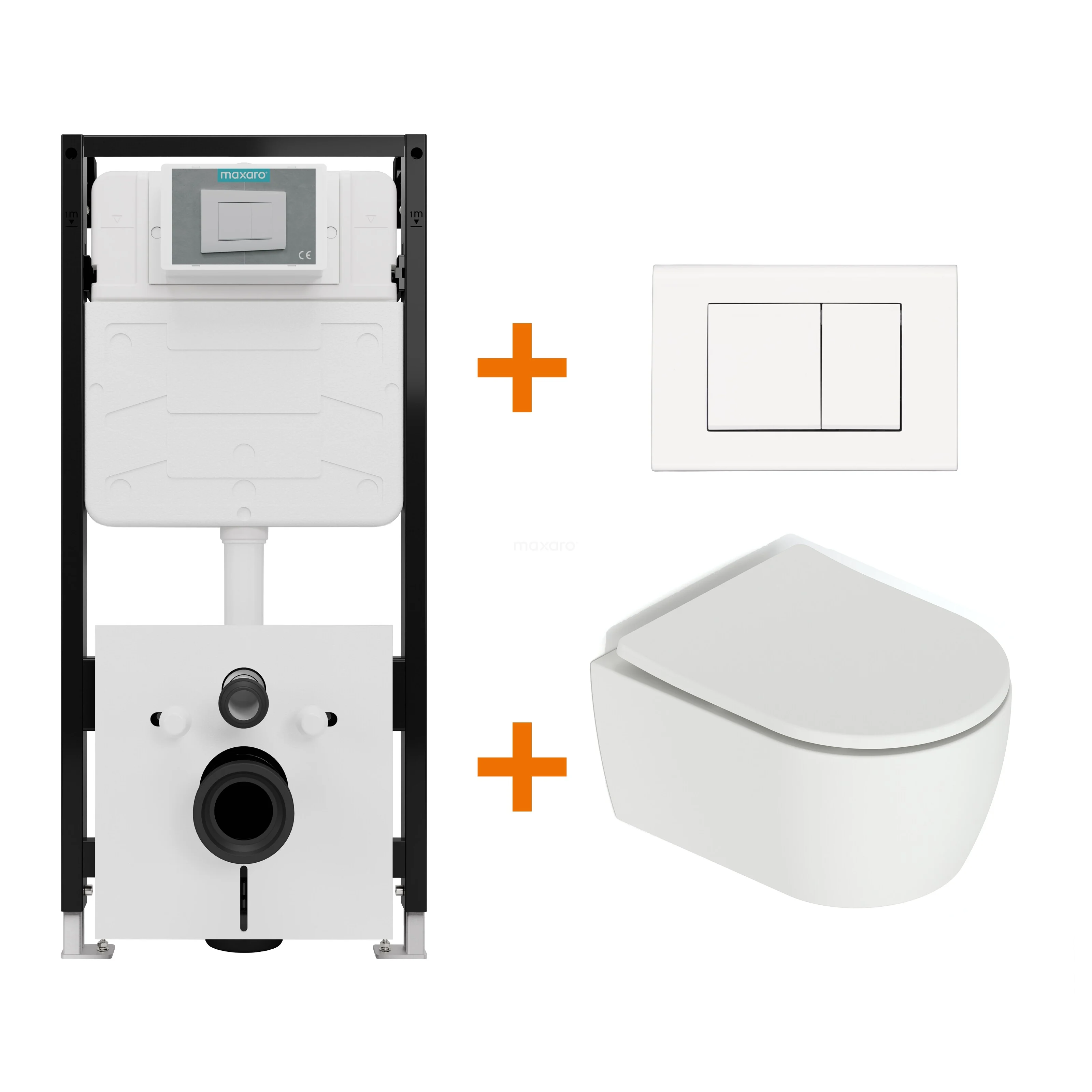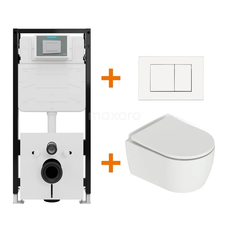 Toiletset Mat wit met Spoelrand + Maxaro Flush Slim Pro inbouwreservoir met geluidsisolatie